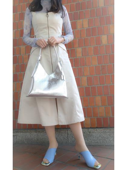 アッパーを深くアシンメトリーにカットしたミュールサンダル。 トレンド継続中のワイドスクエアの中底にくるんとカーブした特徴的なセットバックヒールを付け、シンプルながらもデザイン性を高めました。 甲をしっかりホールドする履きやすさを実現しながらも、かっこいい足元を作ってくれる一足です。