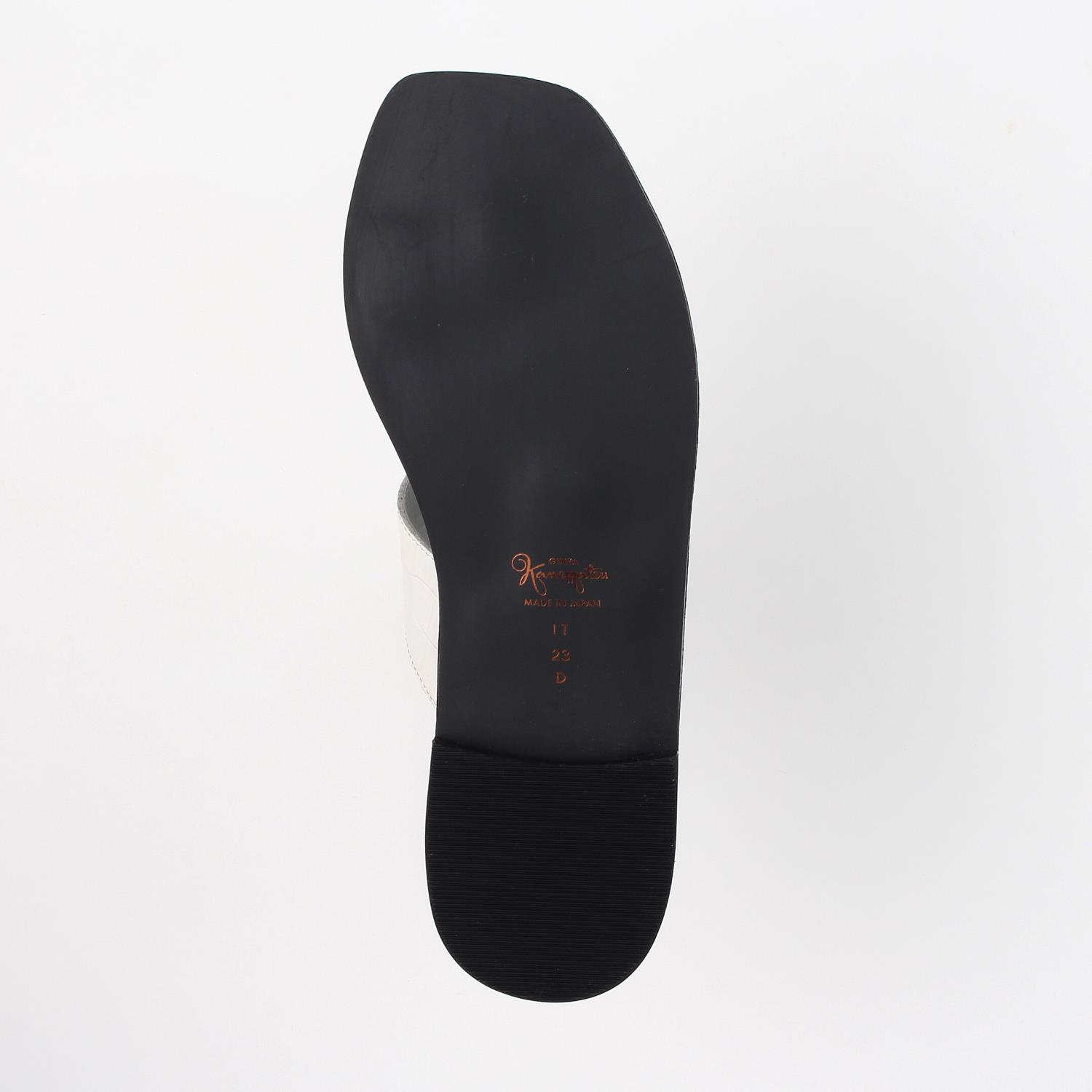 素材:型押し(本革) カラー展開:アイボリー;ブラック ヒール高さ:15㎜ ウィズ: D ヒール形状:ペタンコ・フラット ヒール材質:ゴム サイズ展開:21.5cm~25.0cm 原産国:日本