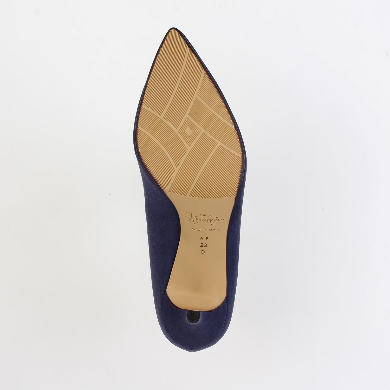 素材:スエード カラー展開:ダークブルー ヒール高さ:75㎜ ウィズ: D ヒール形状:ピンヒール ヒール材質:革巻き サイズ展開:21.0cm~25.5cm 原産国:日本