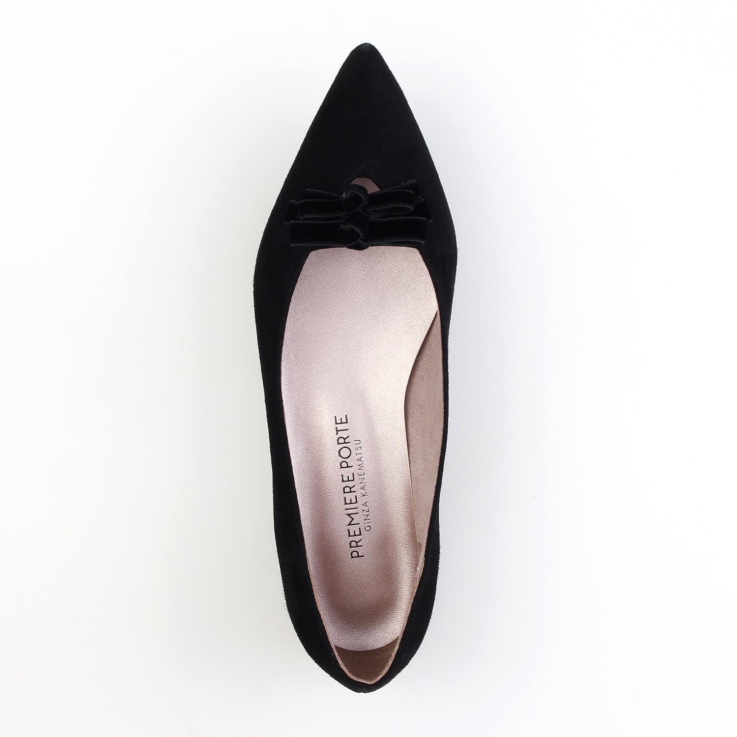 【PREMIERE PORTE】 フェミニンすぎないベルベットのプチリボンをダブル使いしたフラットパンプス。 ボトムスを選ばず合わせやすいので、毎日のように履ける万能アイテムです。