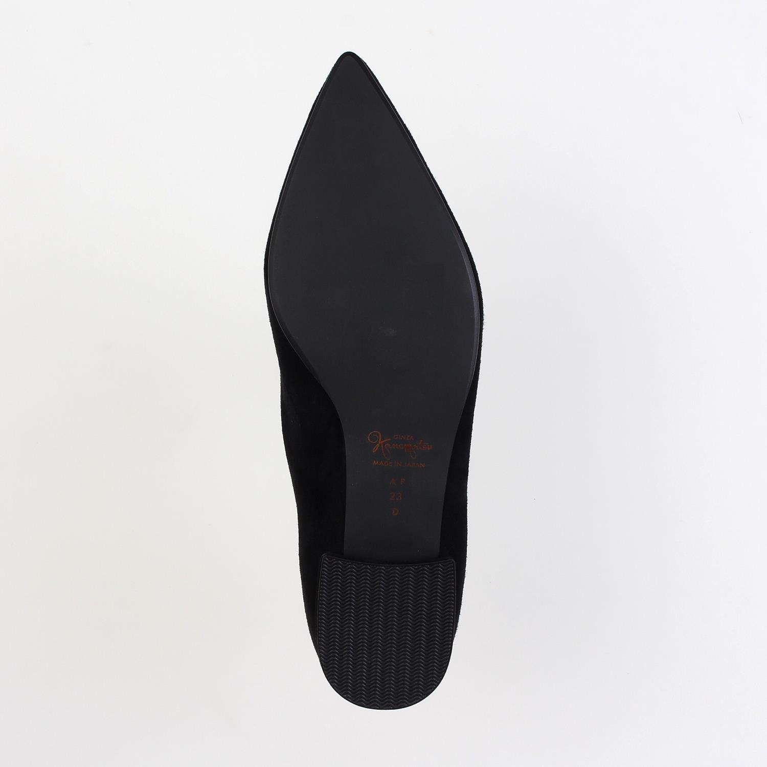 素材:スエード カラー展開:グレージュ;ブラック;パープル ヒール高さ:15㎜ ウィズ: D ヒール形状:ペタンコ・フラット ヒール材質:革巻き サイズ展開:21.5cm~25.0cm 原産国:日本