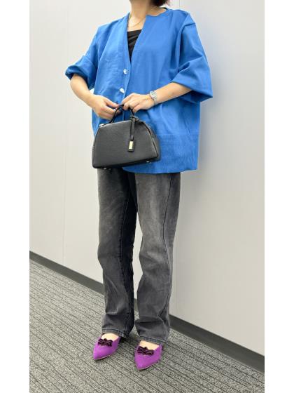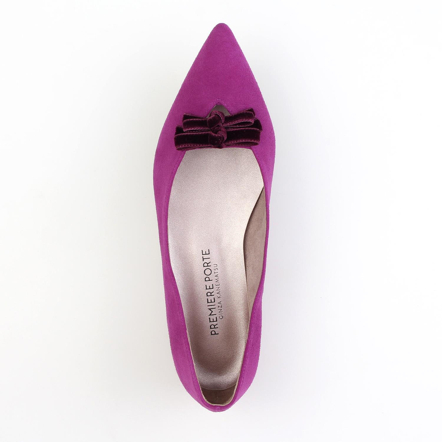 【PREMIERE PORTE】 フェミニンすぎないベルベットのプチリボンをダブル使いしたフラットパンプス。 ボトムスを選ばず合わせやすいので、毎日のように履ける万能アイテムです。