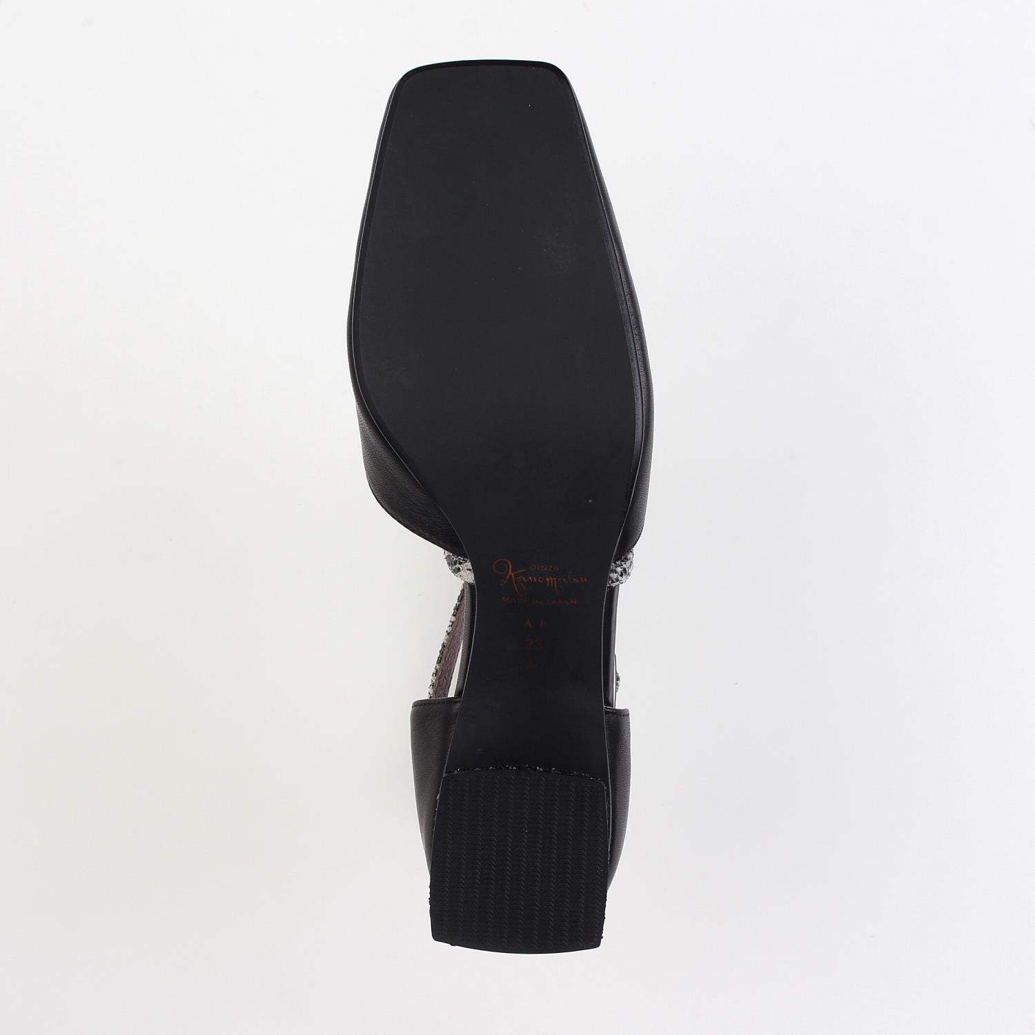 素材:ステア(牛革) プリント(本革) カラー展開:ブラック;ライトベージュ ヒール高さ:47㎜ ウィズ: D ヒール形状:太ヒール ヒール材質:革巻き サイズ展開:21.5cm~25.0cm 原産国:日本