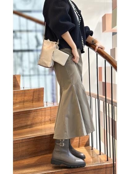 プレーンなブーツが定着した今、鮮度を出すのにオススメなベルテッドブーツ。 少し広めに迫り出した底周りと、細身の筒とのコントラストがポイント。 敢えてふんわりしたロングスカートや、まだ暑い時期のノースリワンピに合わせたり、甘辛コーデにするのがオススメの一足です。<AQUA BELL>