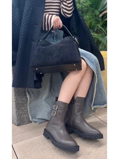 素材:ステア(牛革) カラー展開:ブラック;チャコールグレー;ライトベージュ ヒール高さ:40㎜ ウィズ: D ヒール形状:ペタンコ・フラット ヒール材質:EVA ブーツ筒丈:18cm ブーツ筒周り:27cm サイズ展開:21.5cm~25.5cm 原産国:日本