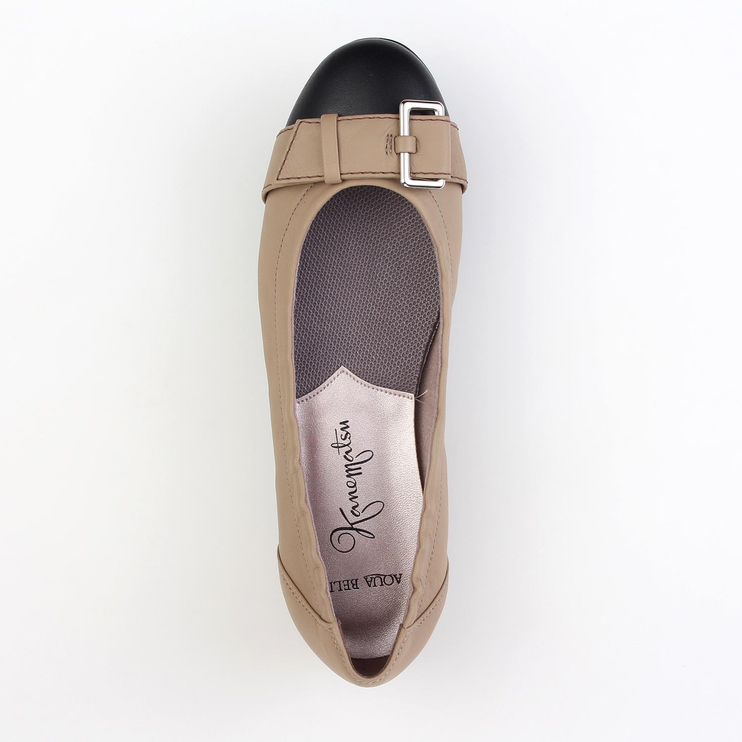 履き心地の良さに定評のある晴雨兼用カッターシューズの新デザイン。 トレンチコートのベルトのように、横幅の細いスクエアバックルを付けることでトラッドイメージに仕上げました。 きちんと感がありつつも、意外とフェミニンなお洋服とも好相性な一足です。<AQUA BELL>。