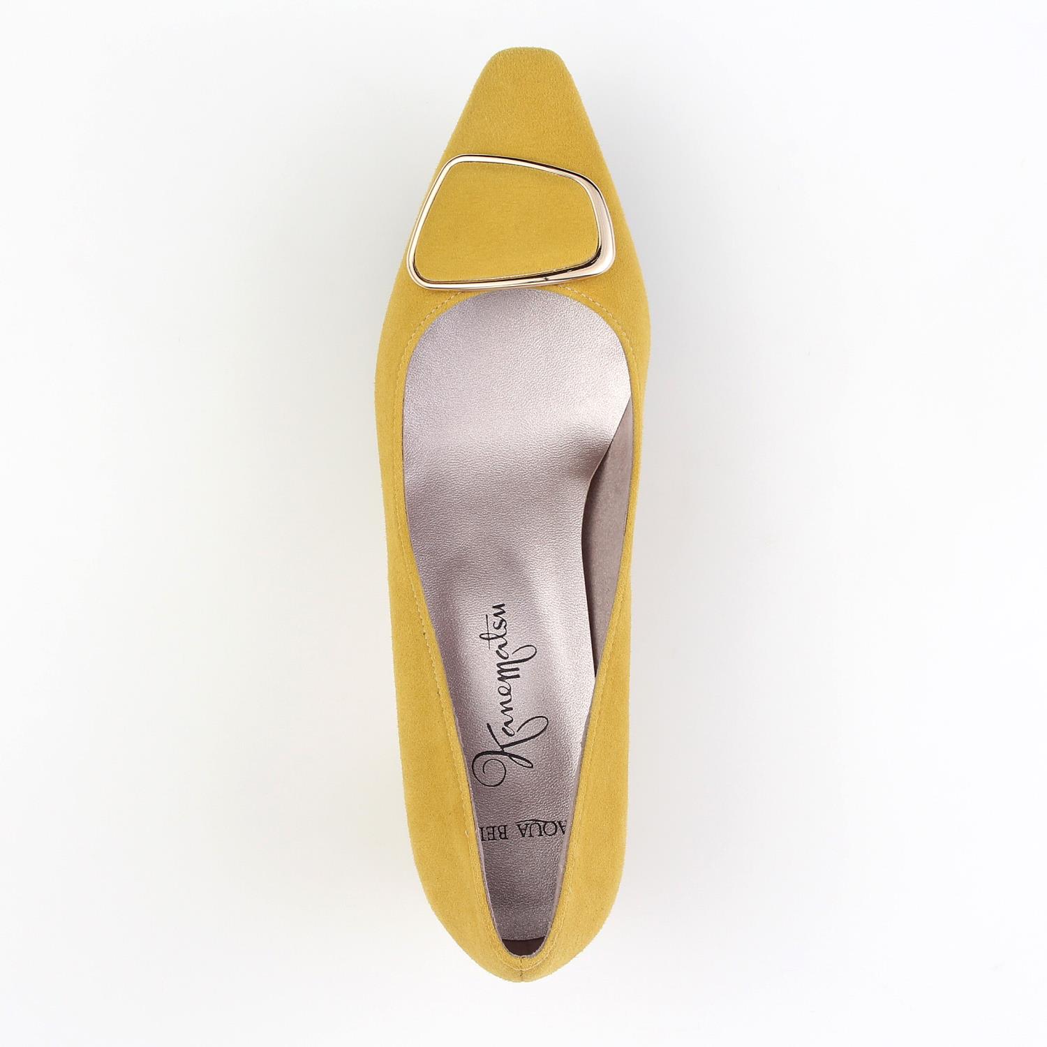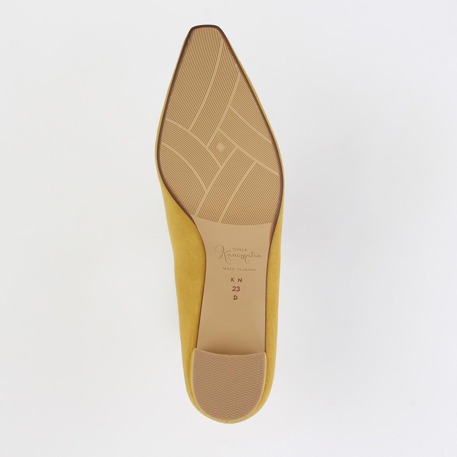 素材:スエード カラー展開:イエロー;ピーコック ヒール高さ:50㎜ ウィズ: D ヒール形状:太ヒール ヒール材質:革巻き サイズ展開:21.5cm~25.5cm 原産国:日本
