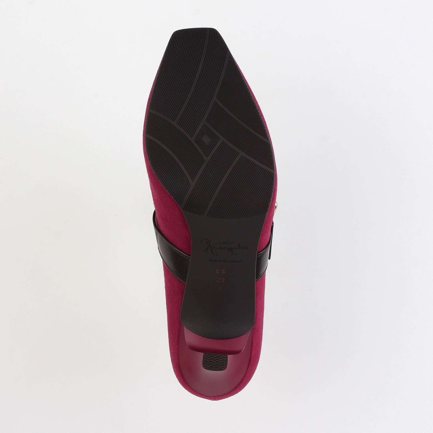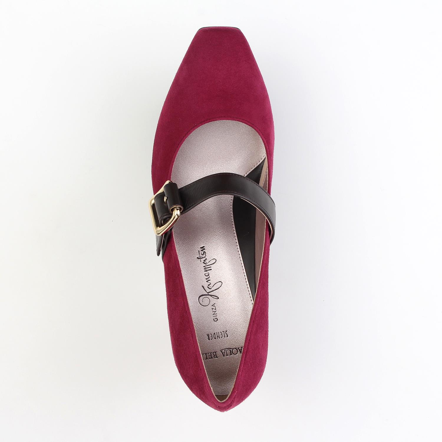 細身の木型を使用したスクエアトゥパンプス。異素材の太い甲ベルトが足元にアクセントをプラスします。<SLENDER/AQUA BELL>