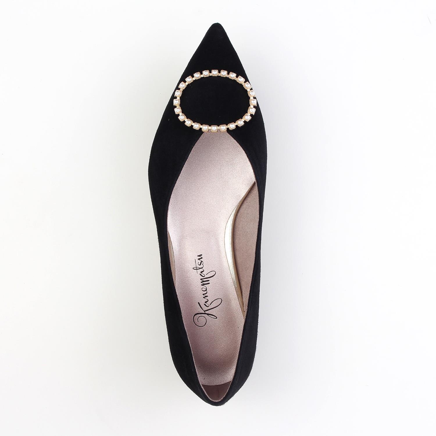 アパレルで注目されているブローチを彷彿とさせる繊細なパール飾りが上品レディな雰囲気のフラットパンプス。 甘めな印象のオーバル形をあえてシャープなVカットに載せ、パンツにも合わせやすい雰囲気に仕上げました。 華やかなコンサバスタイルに合わせた普段使いやオケージョンシーンなどにも使えるマルチな一足です。