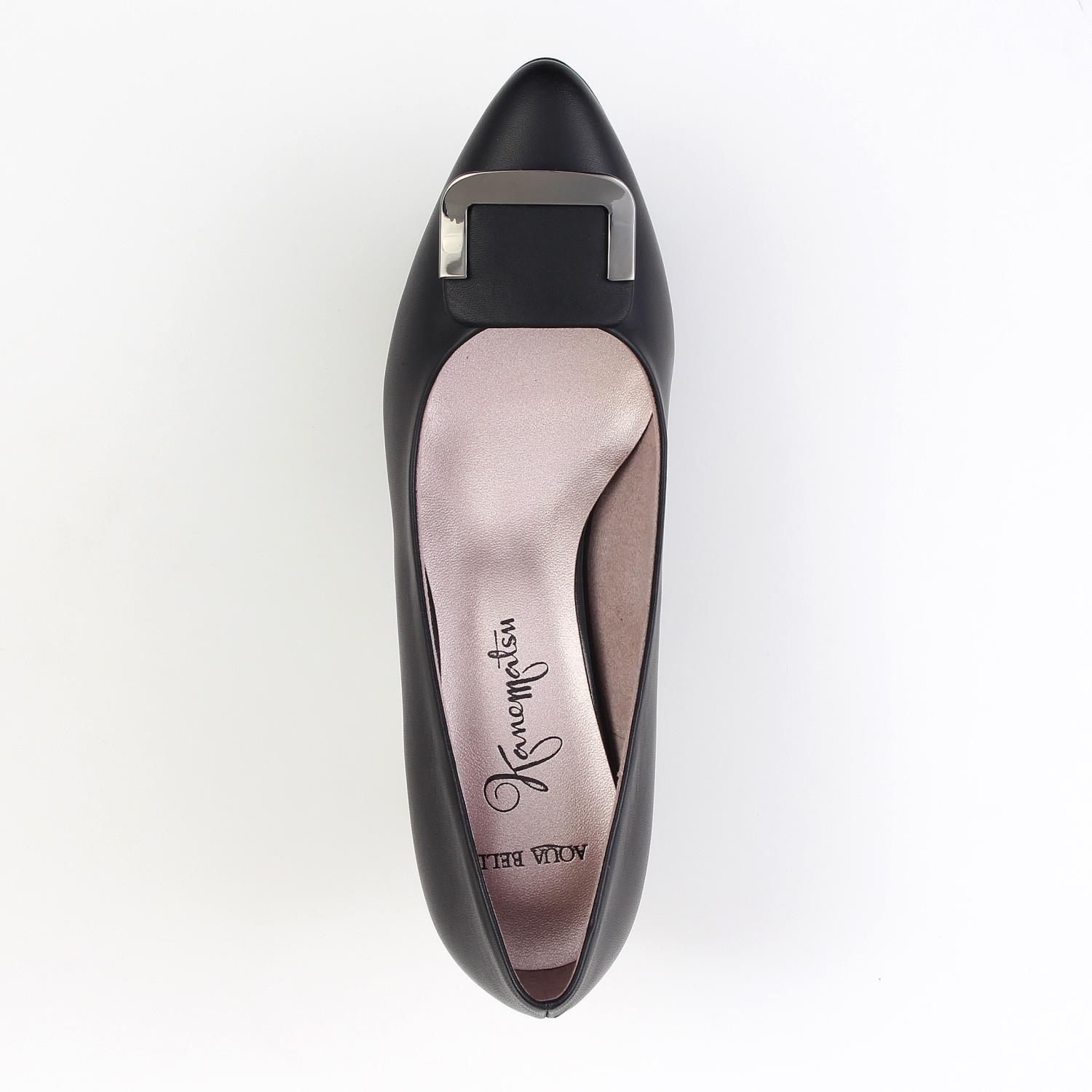 プレートモチーフと優しげなラウンドトゥがポイントの晴雨兼用ミドルヒールパンプス。 きちんと感のあるプレートモチーフが足元にさり気ない立体感を演出。 キレイめな印象を与えてくれる優しいトゥなので、オフィスやソーシャルなシーンにもお勧めの一足です。<AQUA BELL>
