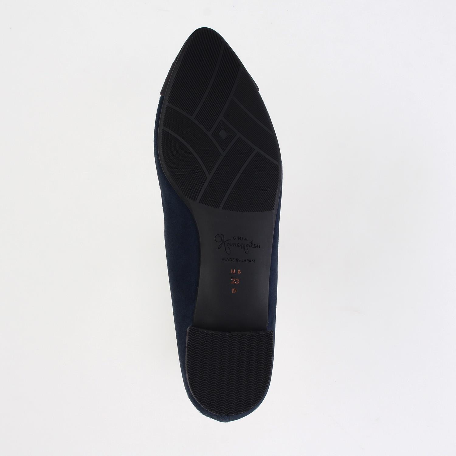 素材:スエード カラー展開:ダークブルー ヒール高さ:15㎜ ウィズ: D ヒール形状:ペタンコ・フラット ヒール材質:革巻き サイズ展開:21.5cm~25.5cm 原産国:日本