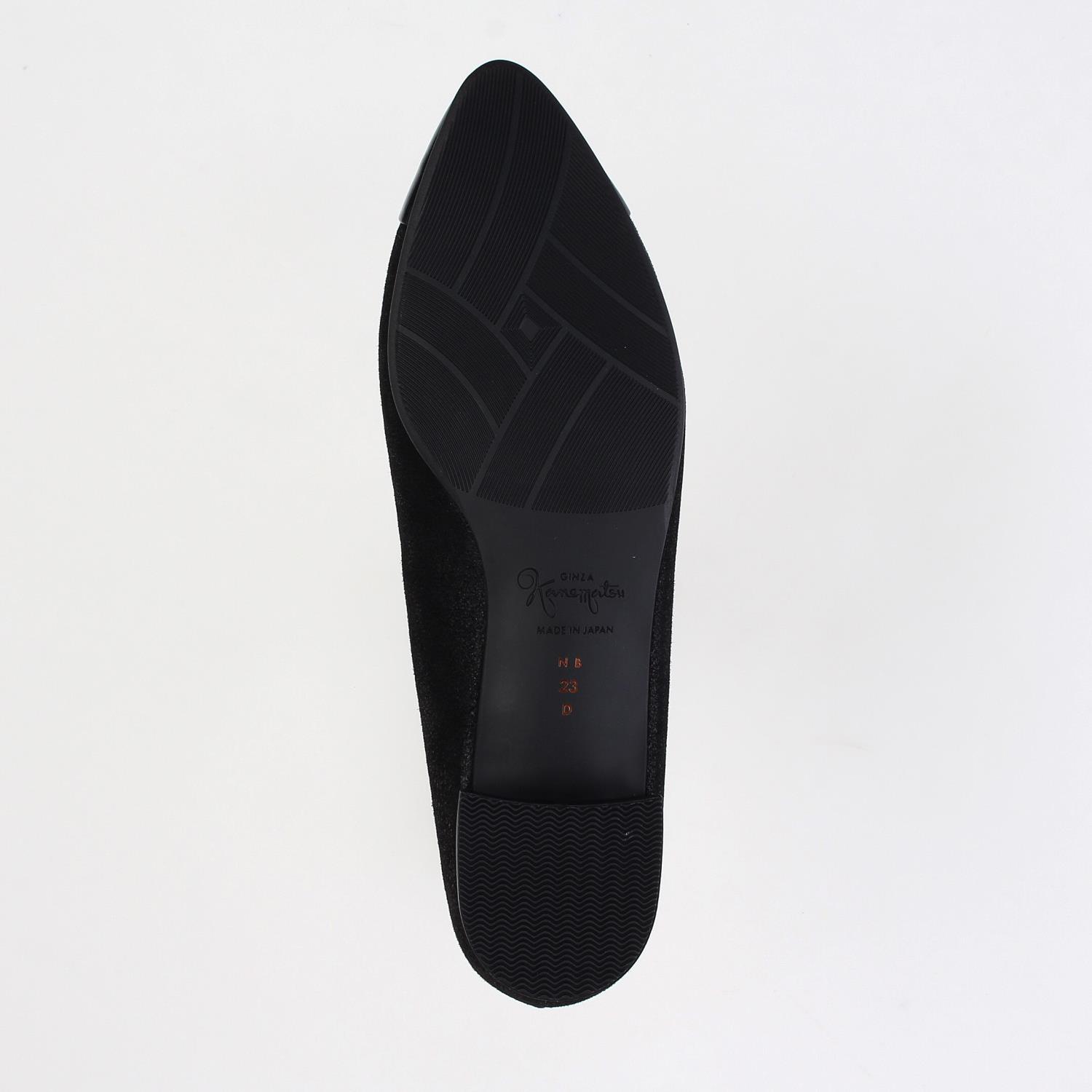 素材:メタリック加工 エナメル カラー展開:ブラック ヒール高さ:15㎜ ウィズ: D ヒール形状:ペタンコ・フラット ヒール材質:革巻き サイズ展開:21.5cm~25.5cm 原産国:日本