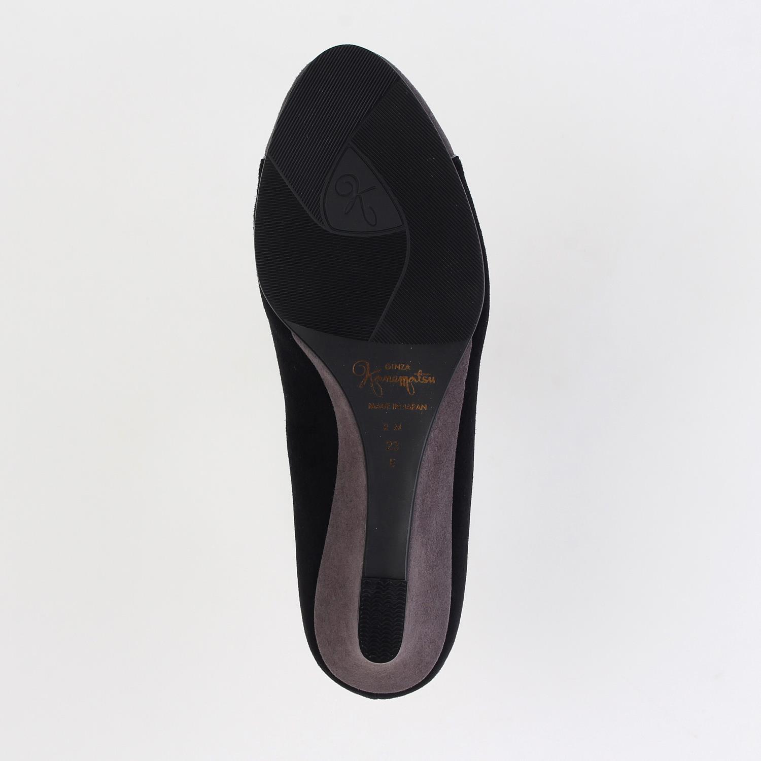 素材:スエード カラー展開:ブラック;ピーコック;ダークブルー ヒール高さ:55㎜ ウィズ: E ヒール形状:ウェッジ ヒール材質:革巻き サイズ展開:21.0cm~25.5cm 原産国:日本
