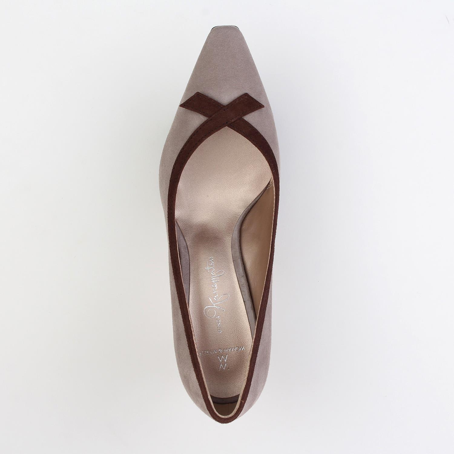 ゆったりめの木型を使用したスクエアトゥパンプス。 さり気ないリボン風デザインがレディな印象をプラスします。 上質なスエードのニアリー配色もオシャレで、オフィスにもデイリーにも使えるアイテムです。<WOMAN&MYSELF>