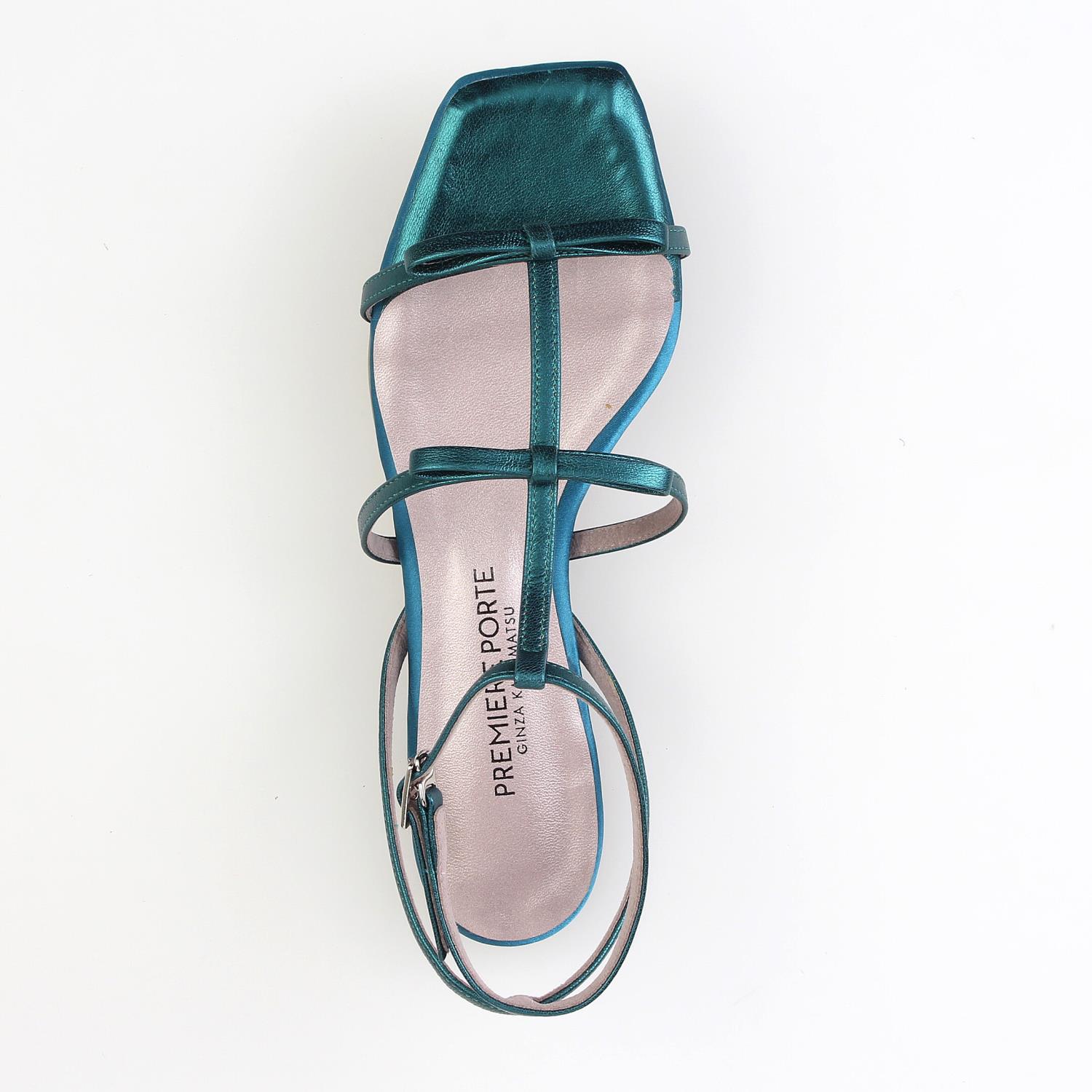 【PREMIERE PORTE】 甘さ控えめなリボンをダブルに乗せてロマンティックムードを演出した、華奢なストリングサンダル。 ニュアンス感のあるメタリックカラーが足元に華やかさをプラスしてくれる一足です。