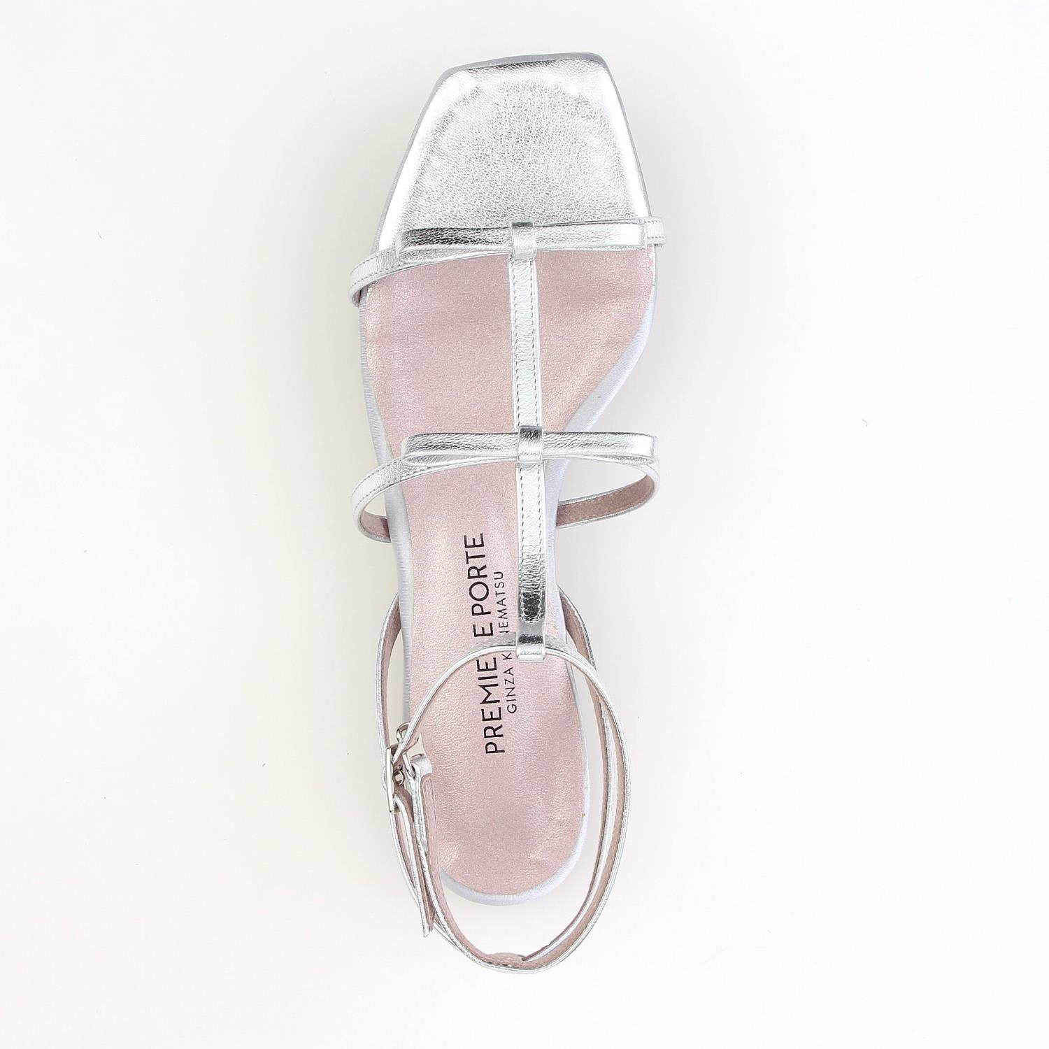 【PREMIERE PORTE】 甘さ控えめなリボンをダブルに乗せてロマンティックムードを演出した、華奢なストリングサンダル。 ニュアンス感のあるメタリックカラーが足元に華やかさをプラスしてくれる一足です。