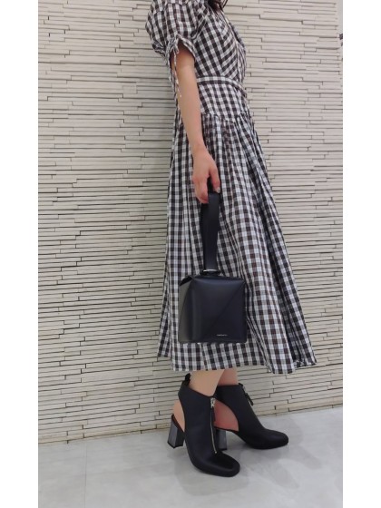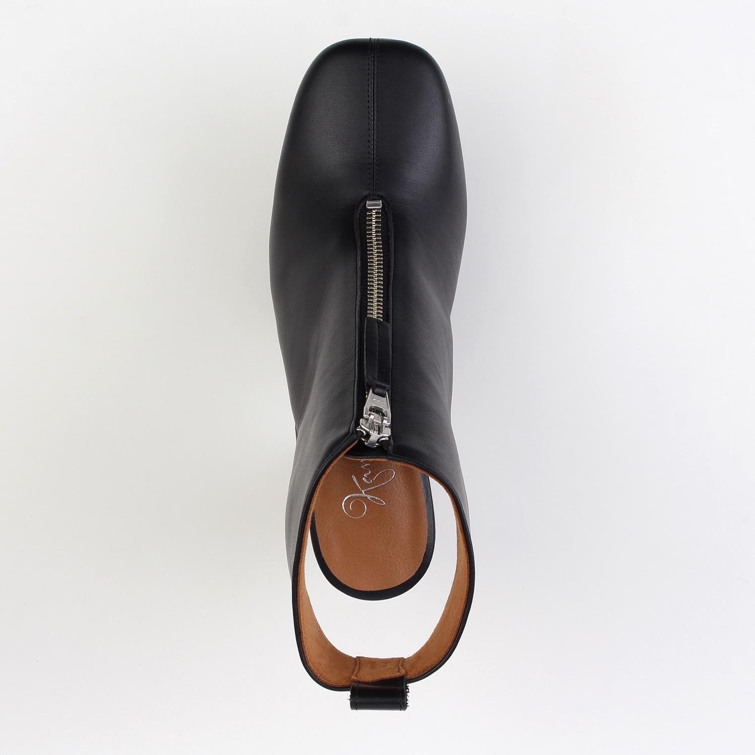 フロントジップがポイントのブーツサンダル。 ワイドなスクエアトゥとちゃんキーヒールでレトロモダンな印象に。 暑い時期は素足で、季節が深まってきたらソックスを合わせれば長いスパンで履ける一足です。