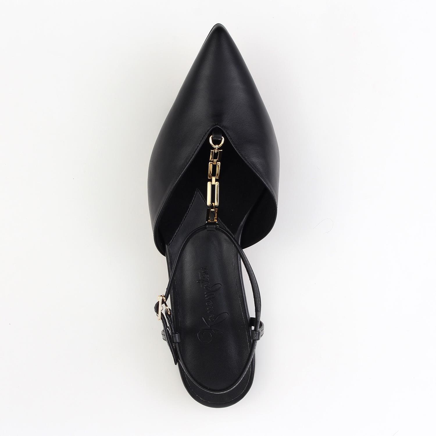 スクエアチェーンをTストラップにあしらったバックベルトパンプス。 深めに切れ込んだVカットは抑揚のあるデザインでセンシュアルな足元を演出。 チェーンに遊びを持たせ揺れるラフ感が女性らしさを格上げしてくれる一足です。