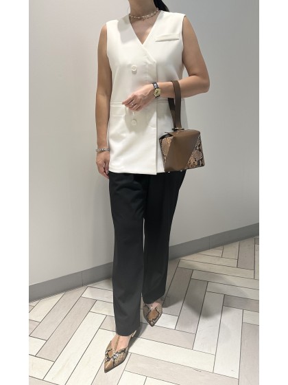 スクエアチェーンをTストラップにあしらったバックベルトパンプス。 深めに切れ込んだVカットは抑揚のあるデザインでセンシュアルな足元を演出。 チェーンに遊びを持たせ揺れるラフ感が女性らしさを格上げしてくれる一足です。