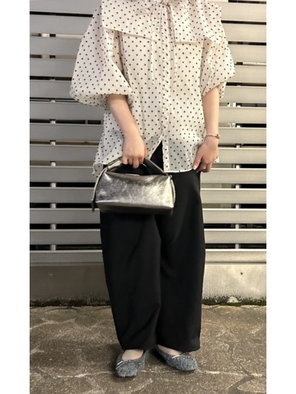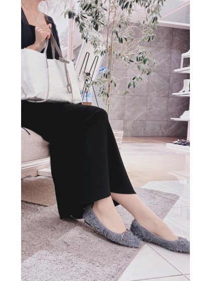 【PREMIERE PORTE】 チュール素材を使用したもしゃもしゃ感がかわいいバレエシューズ。 ワイドめなスクエアトゥシルエットと、立体感の素材感でトレンド感◎な一足です。