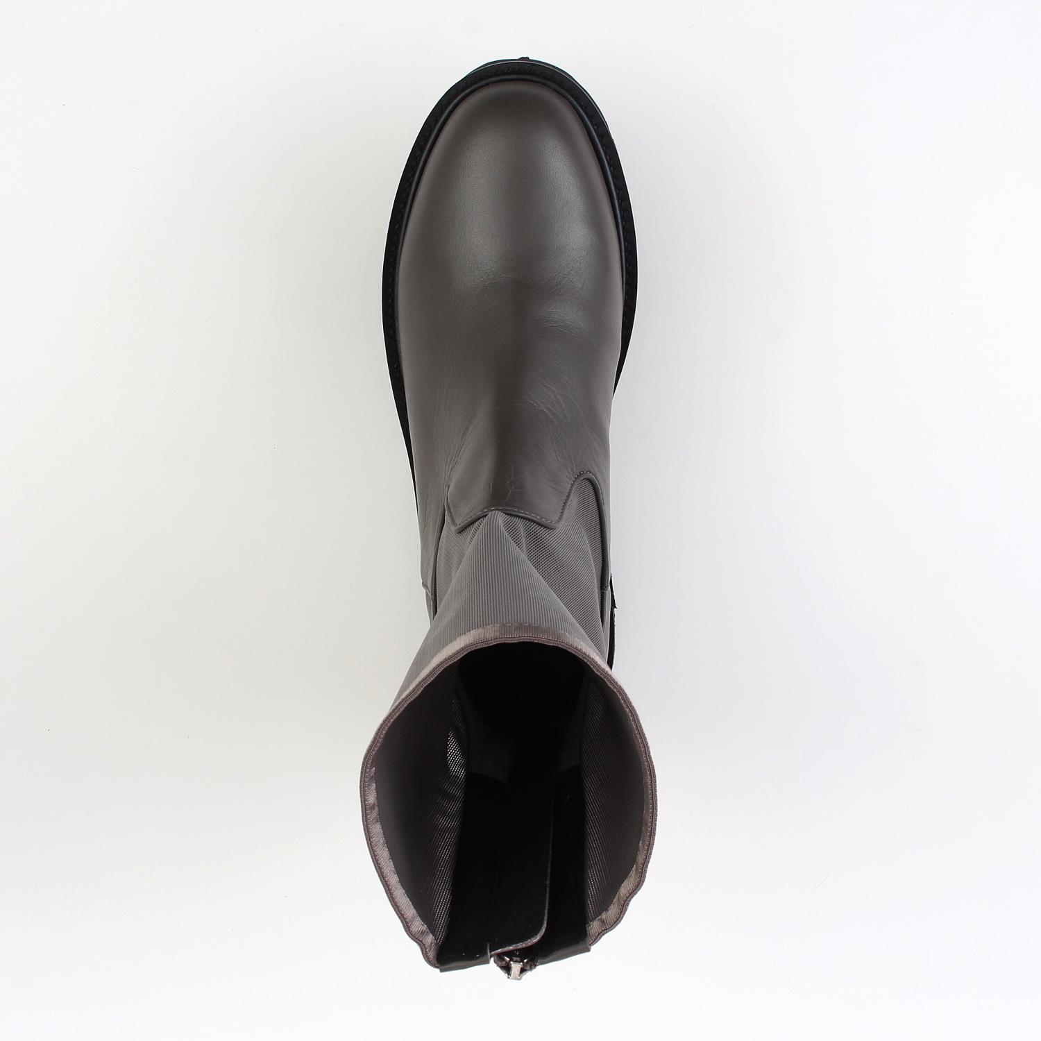 さりげない透け感がポイントのハーフブーツ。 パワーネット素材を筒周りに使用し、ライトな雰囲気と通気性、伸縮性がポイント。 細身の筒周りとボリューム感のある底周りの対比がポイントで、トレンドのショート丈ボトムスと好相性な一足です。