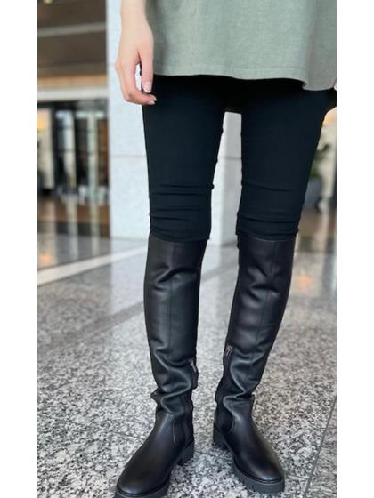 キャタピラソールのボリューム感と細身な筒のバランスで、脚を細く長く見せるオーバーニーブーツ。 ピタッと脚に沿う背面のストレッチ生地や、歩行をサポートしてくれるインソールが良好な履き心地を叶えます。 今シーズントレンドのミニ丈のボトムスと合わせてほしい一足です。