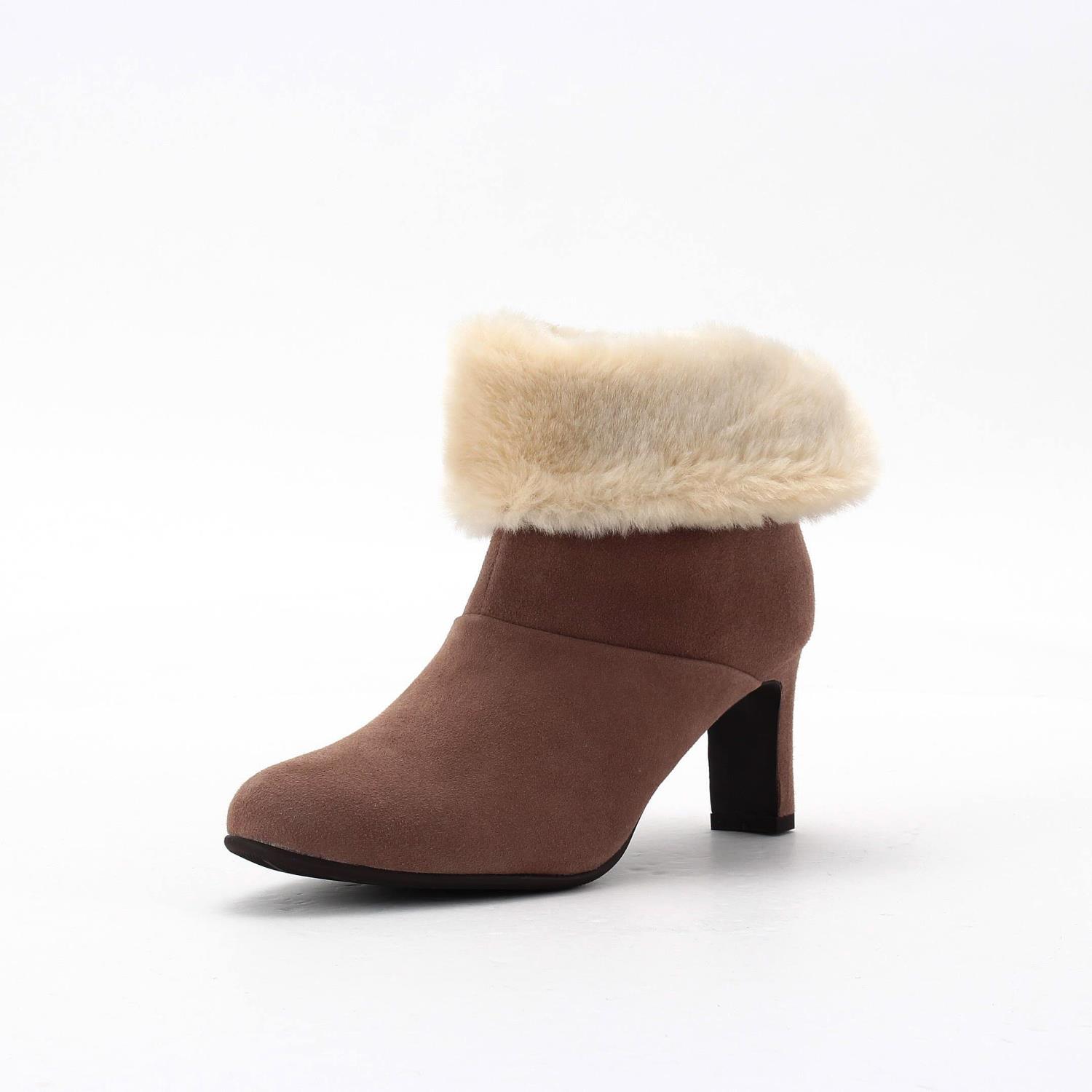 素材:スエード フェイクファー カラー展開:オーク ヒール高さ:65㎜ ウィズ: D ヒール形状:スタンダード ヒール材質:革巻き ブーツ筒丈:14cm ブーツ筒周り:25cm サイズ展開:21.5cm~25.0cm 原産国:日本