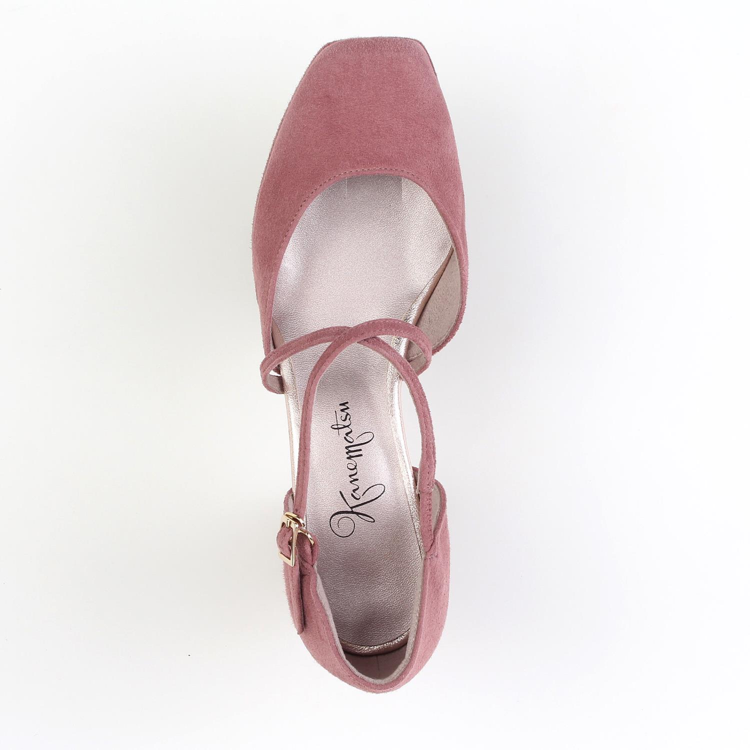 素材:スエード カラー展開:ダスティピンク;ブルー ヒール高さ:77㎜ ウィズ: D ヒール形状:太ヒール ヒール材質:革巻き サイズ展開:21.5cm~25.0cm 原産国:日本