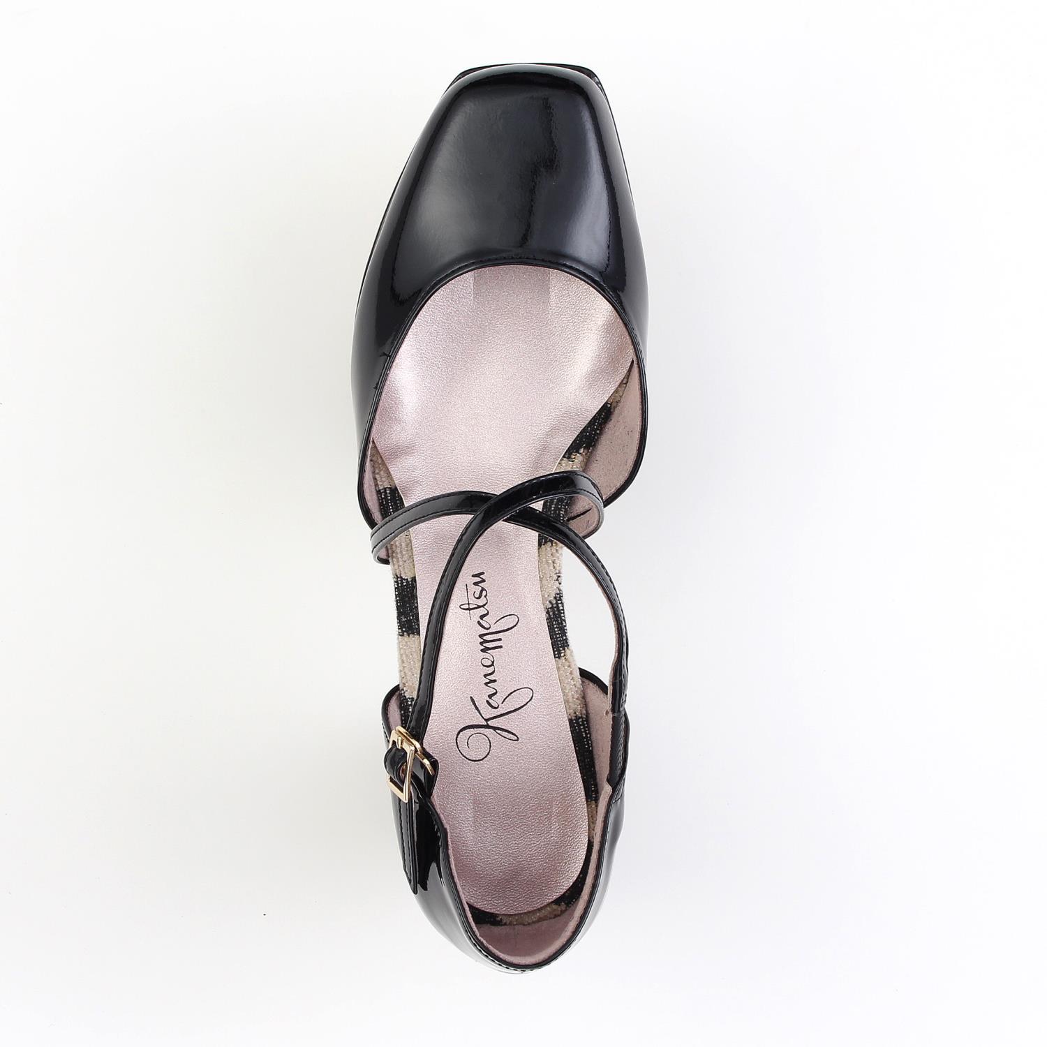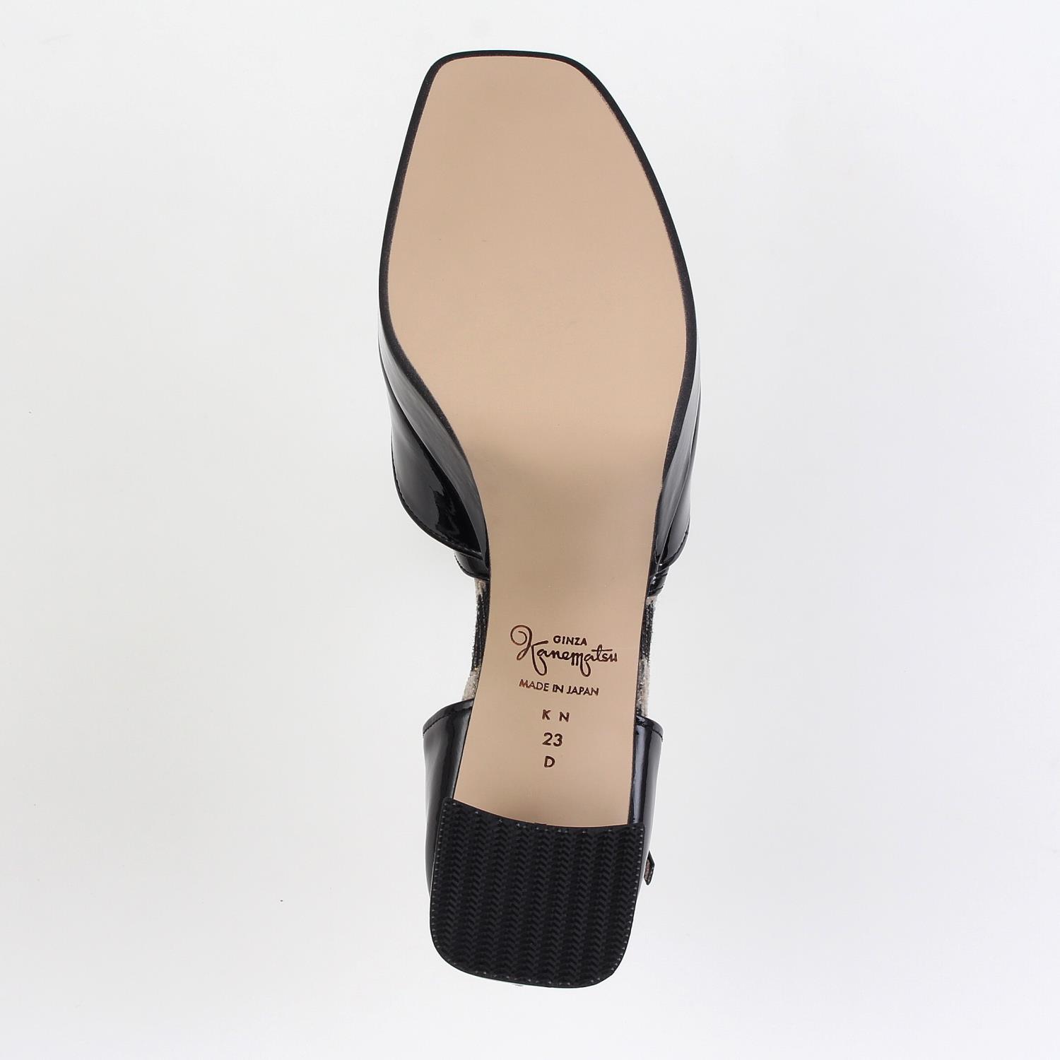 素材:エナメル カラー展開:ブラック ヒール高さ:77㎜ ウィズ: D ヒール形状:太ヒール ヒール材質:革巻き サイズ展開:21.5cm~25.0cm 原産国:日本