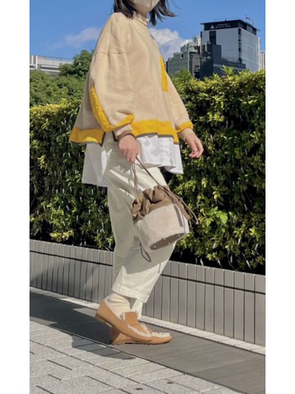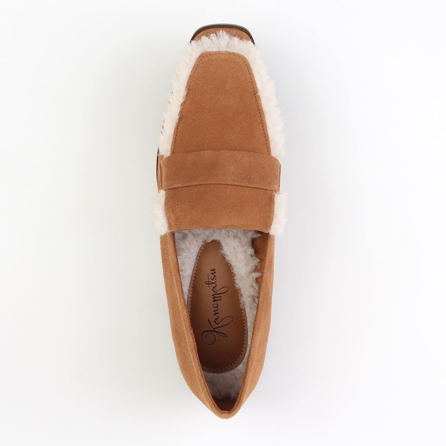 スッキリとしたスクエアトゥがポイントのシンプルなローファー。 モカの履き口を折り返した仕様にすることでソフトで洗練された印象に仕上げました。 サイドからファーを覗かせた遊びのある表情で、シーズンムードを高めてくれる一足です。
