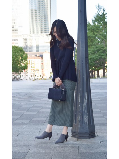 素材:スエード コンビ カラー展開:グレー;ブラック ヒール高さ:47㎜ ウィズ: B ヒール形状:スタンダード ヒール材質:塗装 サイズ展開:21.5cm~25.5cm 原産国:日本