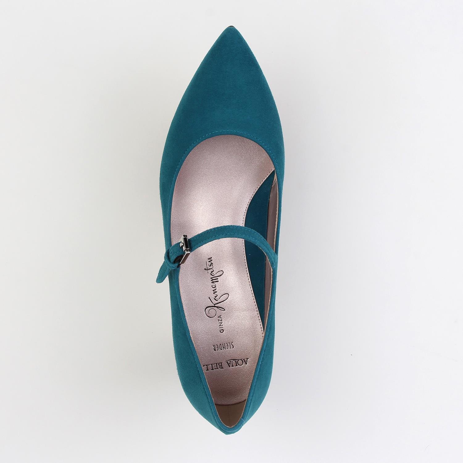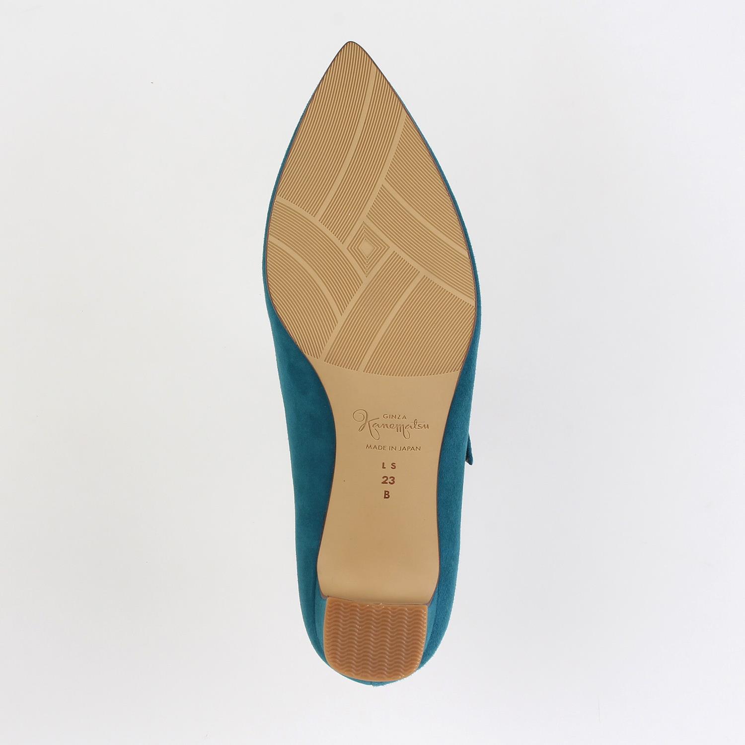 素材:スエード カラー展開:ピーコック ヒール高さ:49㎜ ウィズ: B ヒール形状:太ヒール ヒール材質:革巻き サイズ展開:21.5cm~25.0cm 原産国:日本