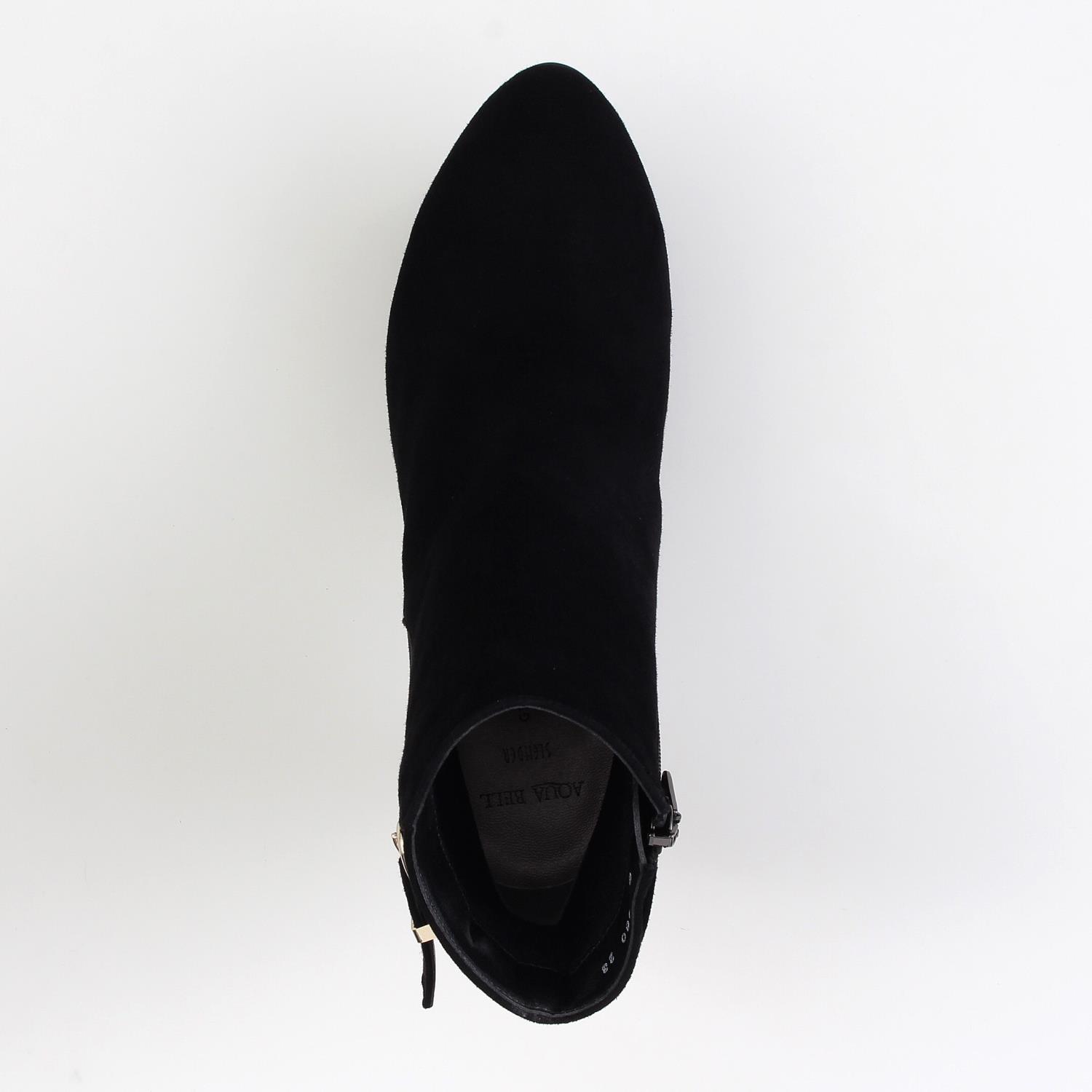 細身の木型を使用した晴雨兼用のショートブーツ。 サイドのカッティングと細めのベルトがさり気ないアクセントに◎。 グラデーションヒールも取り入れて、シンプルながらも価値観のあるムードに仕上げた一足です。<SLENDER/AQUA BELL>