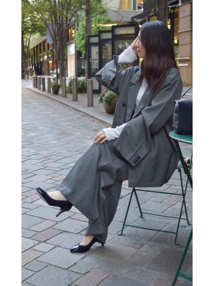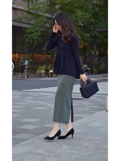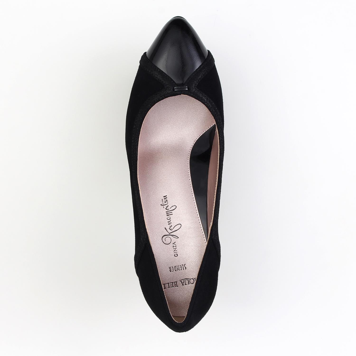 素材:スエード コンビ カラー展開:ブラック ヒール高さ:68㎜ ウィズ: B ヒール形状:スタンダード ヒール材質:革巻き サイズ展開:21.5cm~25.5cm 原産国:日本