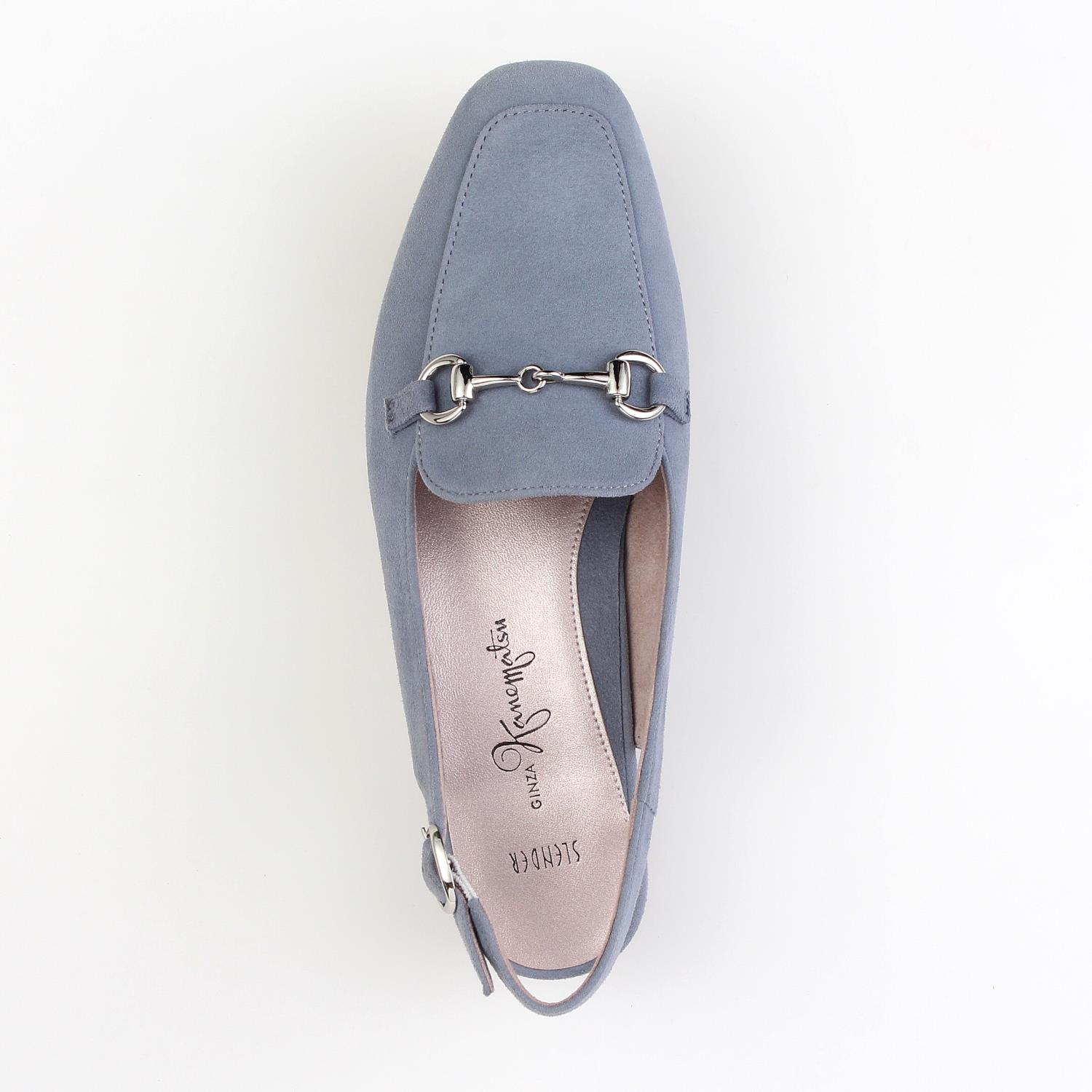 素材:スエード カラー展開:ブルー ヒール高さ:28㎜ ウィズ: B ヒール形状:スタンダード ヒール材質:革巻き サイズ展開:21.5cm~25.0cm 原産国:日本