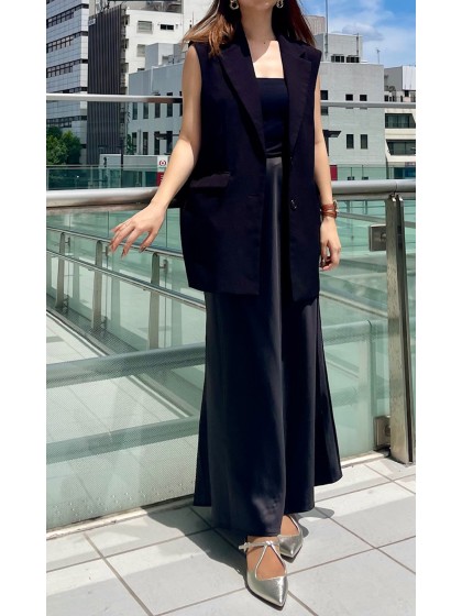 三角のように配したストラップがポイントのミュール。 夏から秋口にかけて使いやすい軽やかな素材感でありつつ、ほんのり秋を意識したトーンが魅力。 程よく華奢なミドルヒールがコーディネートに上品さを演出してくれる一足です。