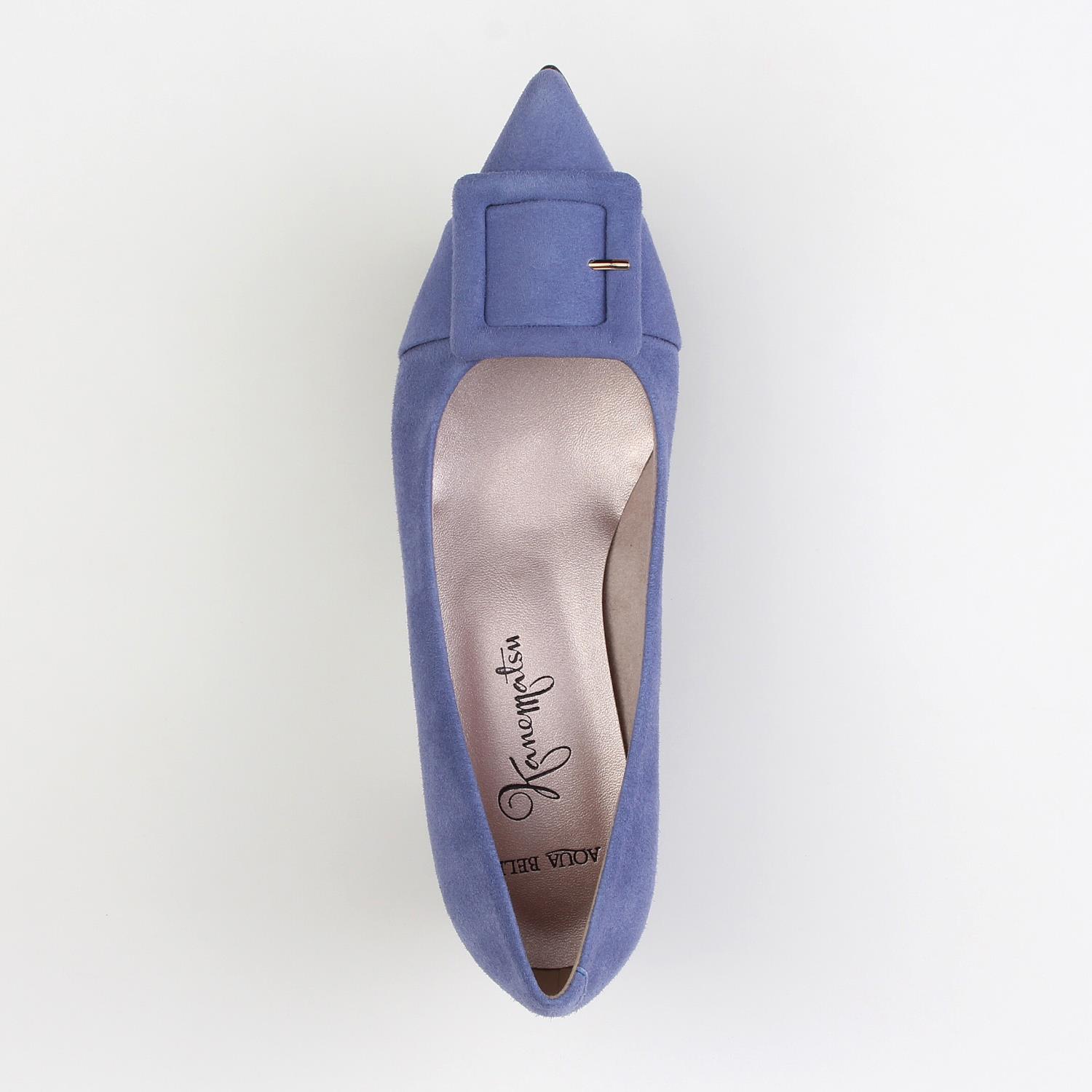 素材:スエード カラー展開:ブルー ヒール高さ:45㎜ ウィズ: D ヒール形状:太ヒール ヒール材質:革巻き サイズ展開:21.5cm~25.0cm 原産国:日本
