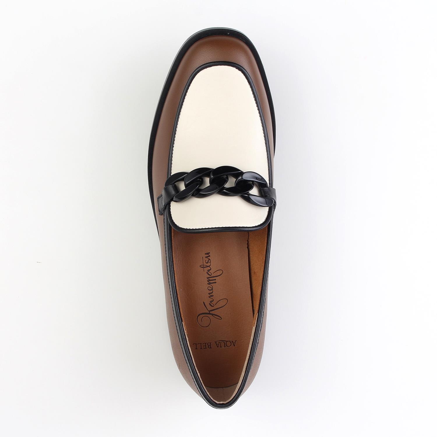 足入れに定評のある木型をしようした晴雨兼用のローファー。 カジュアルになりすぎず、スタイリッシュに使えるチェーンモチーフがポイント。 ON/OFF問わず合わせやすい一足です。<AQUA BELL>