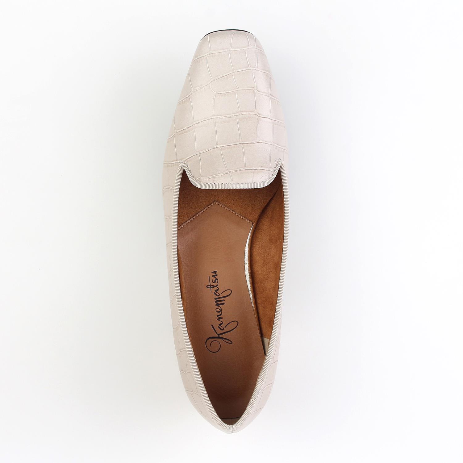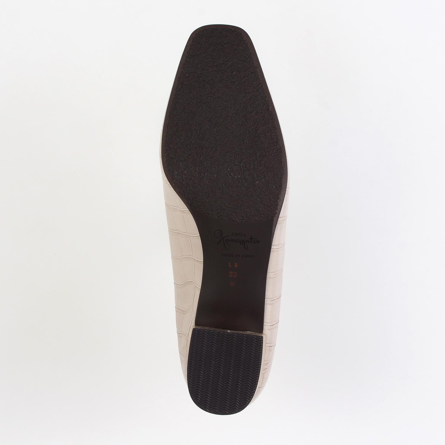 型押しレザーがクールな雰囲気のオペラパンプス。 35㎜の太めミドルヒールが安定感◎。 シンプルなデザインなのでオフィスシーンはもちろん、デイリーにも履きやすい一足です。