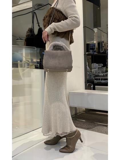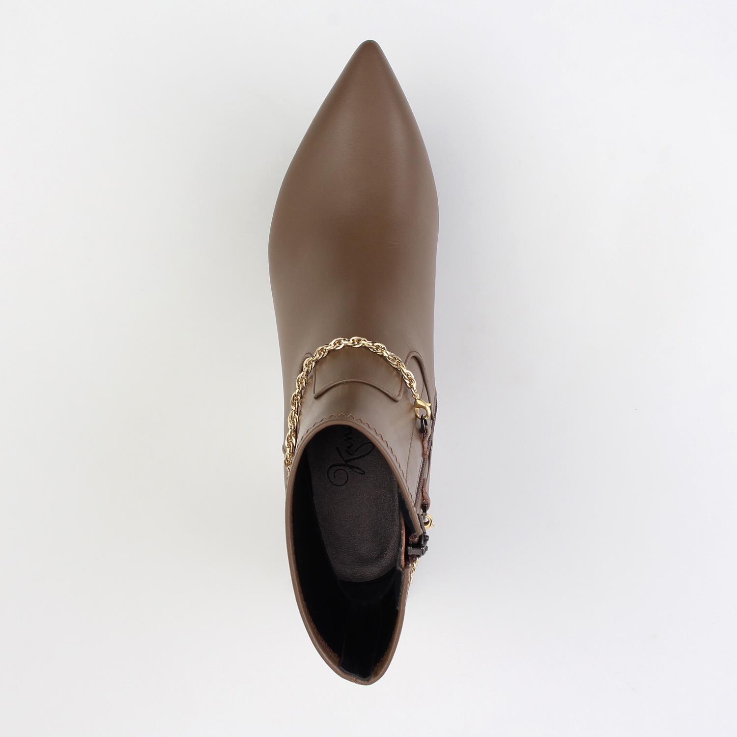 足首のゴールドチェーンがポイントの2WAYショートブーツ。 チェーンは取り外しが出来るので、その日のスタイリングによってカジュアルからきれいめまで幅広く合わせやすいのも嬉しいポイント。 足が綺麗に見える丈感&足首はやや細めにして、シルエットにもこだわった一足です。