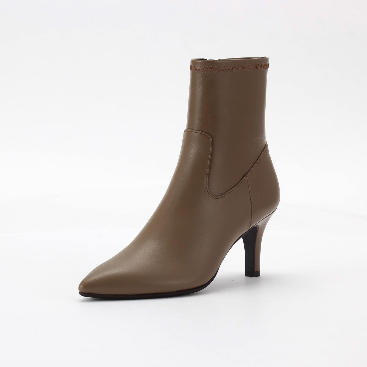 素材:ステア(牛革) カラー展開:グレージュ;ブラック;オリーブ ヒール高さ:68㎜ ウィズ: D ヒール形状:スタンダード ヒール材質:革巻き ブーツ筒丈:14cm ブーツ筒周り:22cm サイズ展開:21.5cm~25.5cm 原産国:日本