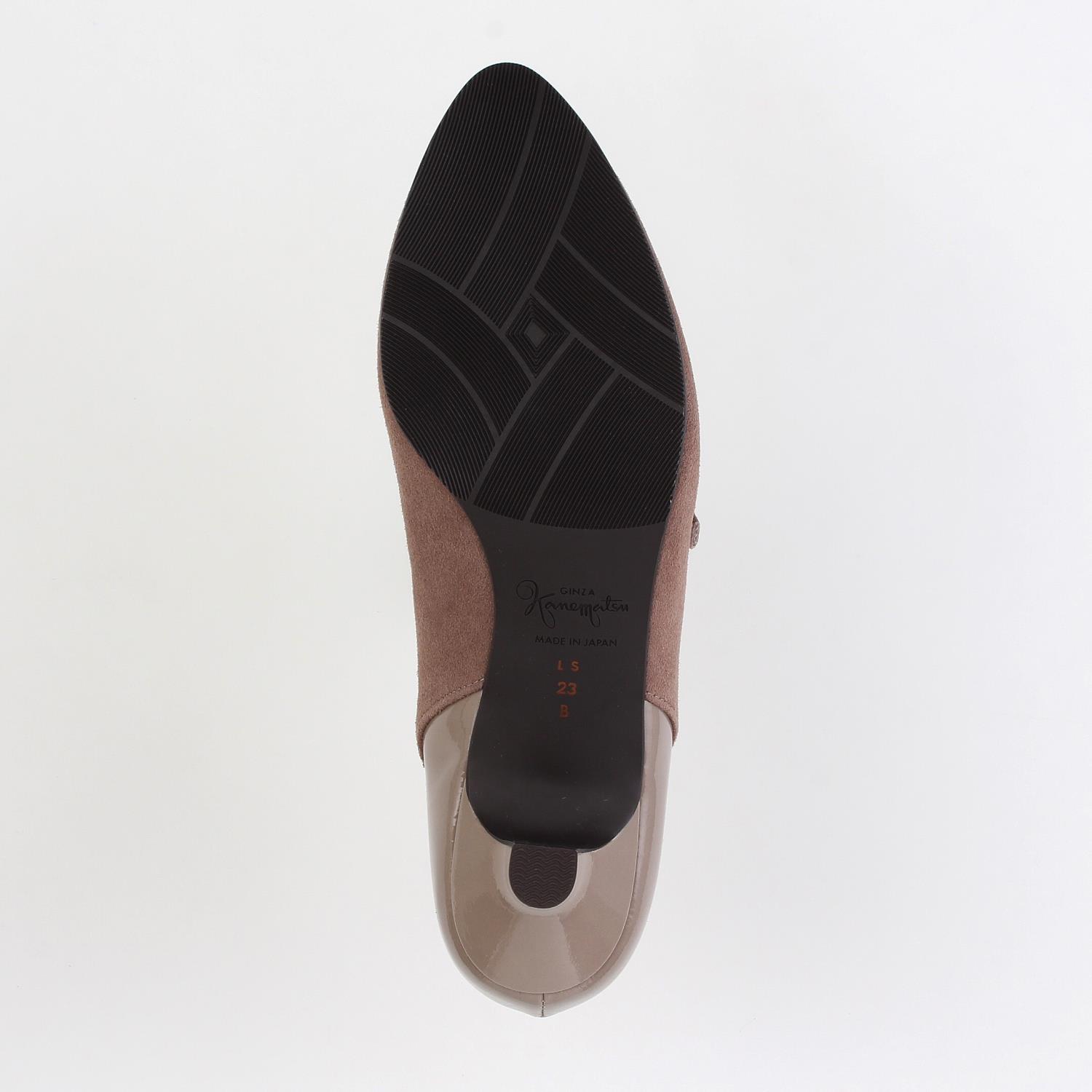 素材:スエード エナメル カラー展開:ブラック;オーク ヒール高さ:40㎜ ウィズ: B ヒール形状:スタンダード ヒール材質:革巻き サイズ展開:21.5cm~25.5cm 原産国:日本