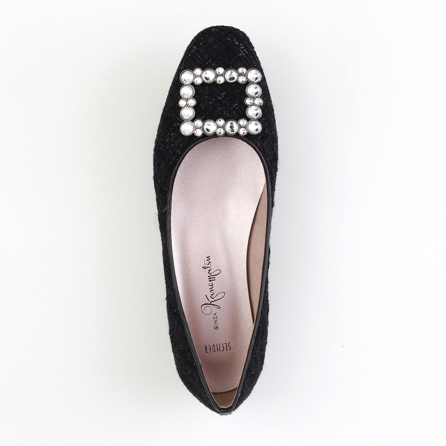 素材:ツイード カラー展開:ライトグレー;ブラック;ベージュ ヒール高さ:16㎜ ウィズ: B ヒール形状:ペタンコ・フラット ヒール材質:革巻き サイズ展開:21.5cm~25.0cm 原産国:日本