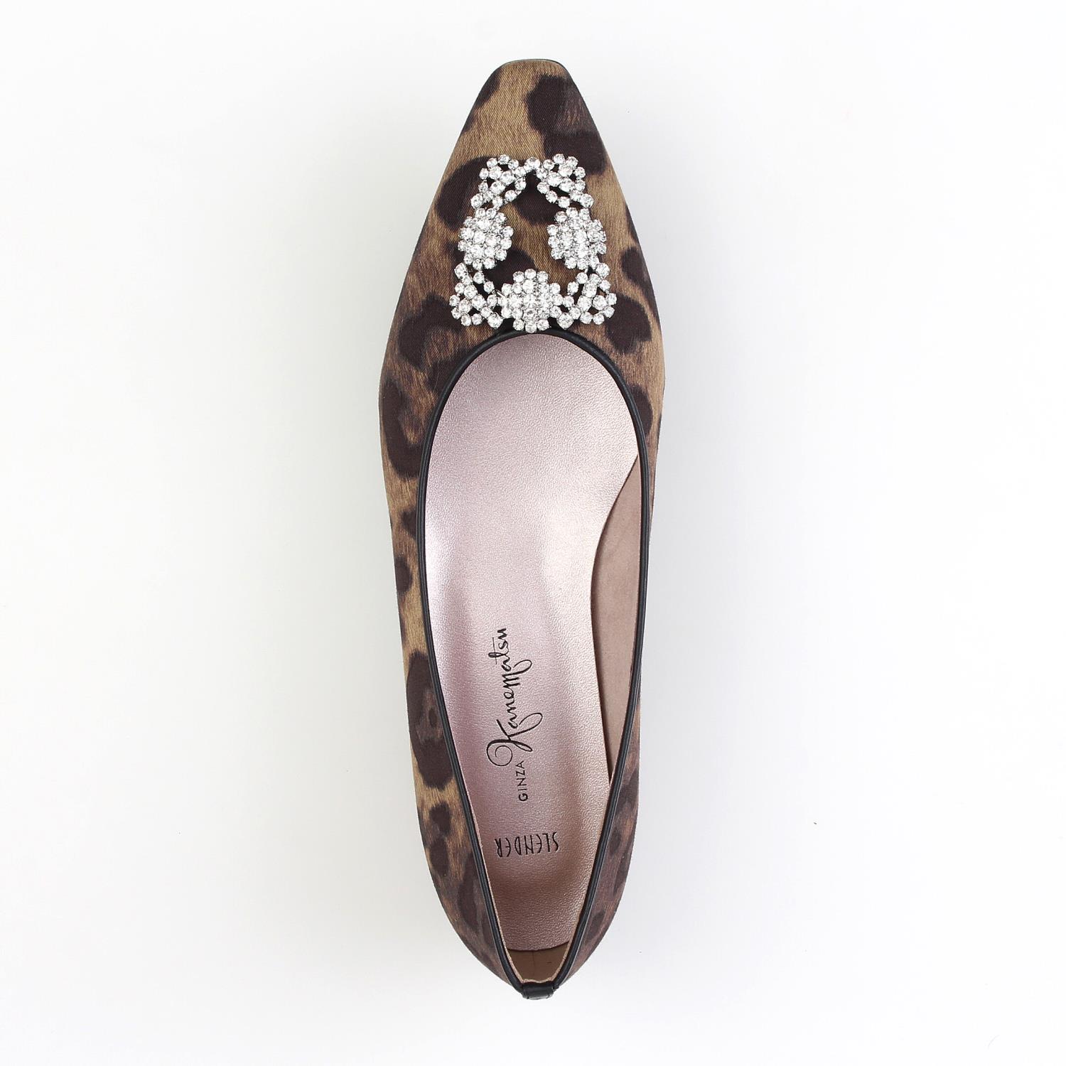 【銀座かねまつ PREMIUM:限定商品】 細めの木型を使用し、小粒のビジューをふんだんにちりばめたバックルが控えめながらもリッチに輝くパンプス。フラットヒールなのでデイリーにも履きやすい一足です。<SLENDER> ※当サイトと取り扱い店舗以外でのご購入やお取り寄せは承っておりません