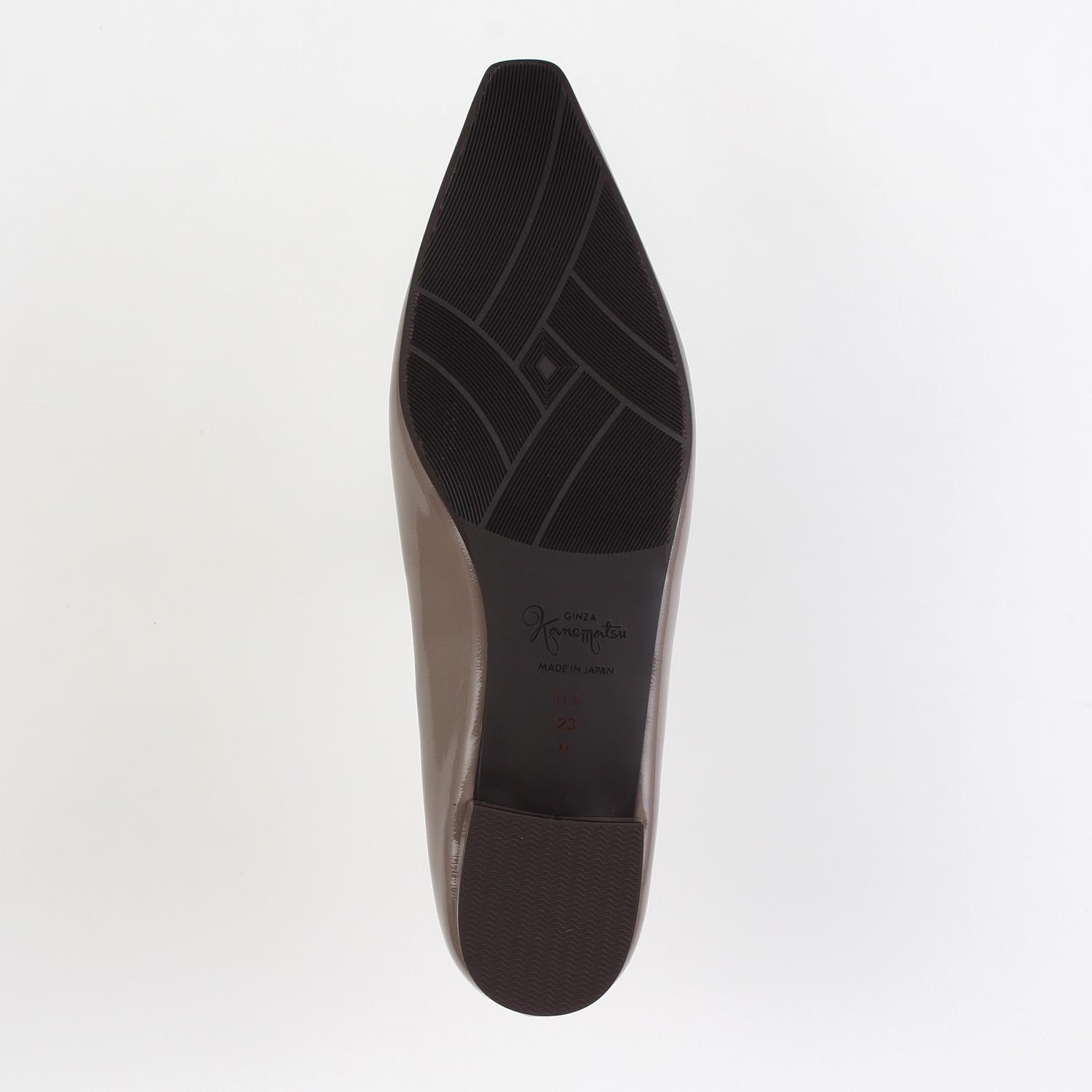 素材:エナメル カラー展開:ワイン;オーク ヒール高さ:17㎜ ウィズ: D ヒール形状:ペタンコ・フラット ヒール材質:革巻き サイズ展開:21.0cm~26.0cm 原産国:日本