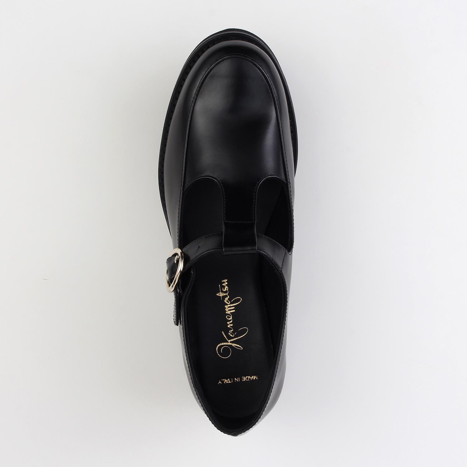 Tストラップデザインのヒールアップローファー。 丸型のバックルが程よいアクセントをプラス。 シンプルでも洗練されたシルエットでデイリーに履きやすい一足です。