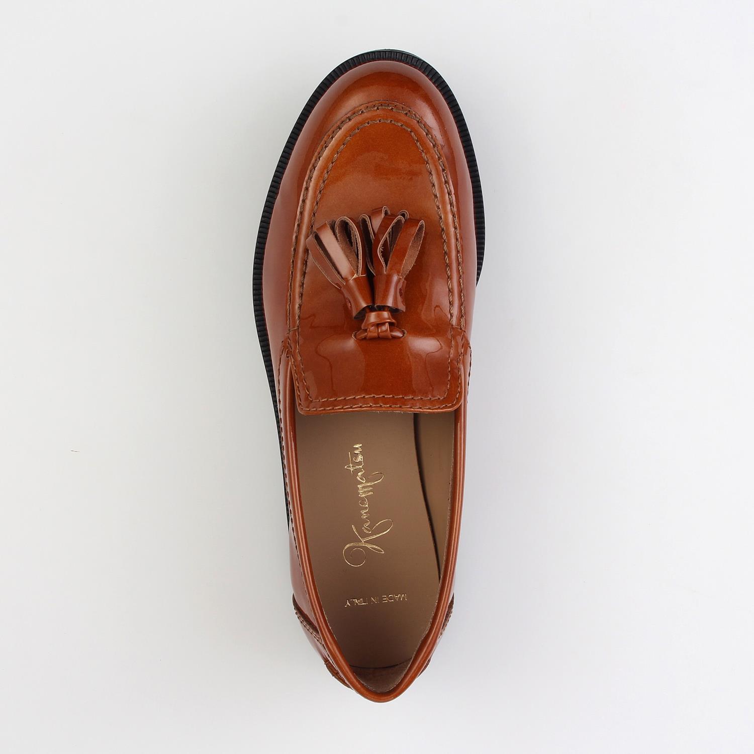 大きめタッセルがポイントのローファー。 輝き感のあるエナメル素材を使用しレトロなムードをプラス。 トレンドのプレッピースタイルとも好相性な一足です。