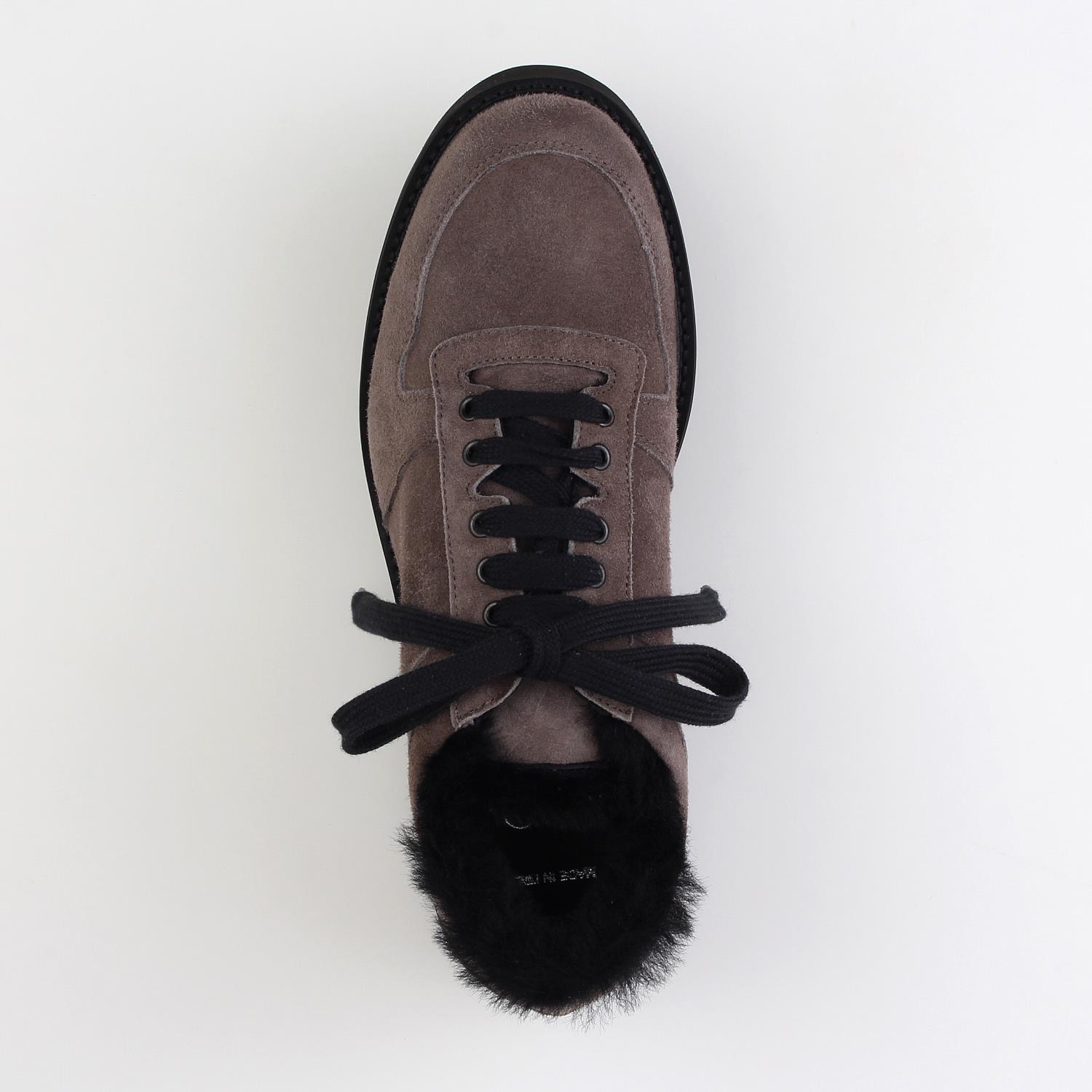 履き口から覗くファーがポイントのレースアップシューズ。 ボリュームのあるソールがカジュアルな雰囲気をプラス。 インポートらしいデザインの一足です。