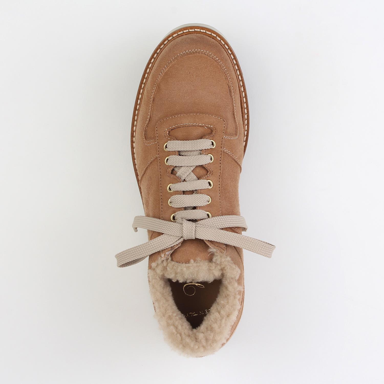 履き口から覗くファーがポイントのレースアップシューズ。 ボリュームのあるソールがカジュアルな雰囲気をプラス。 インポートらしいデザインの一足です。