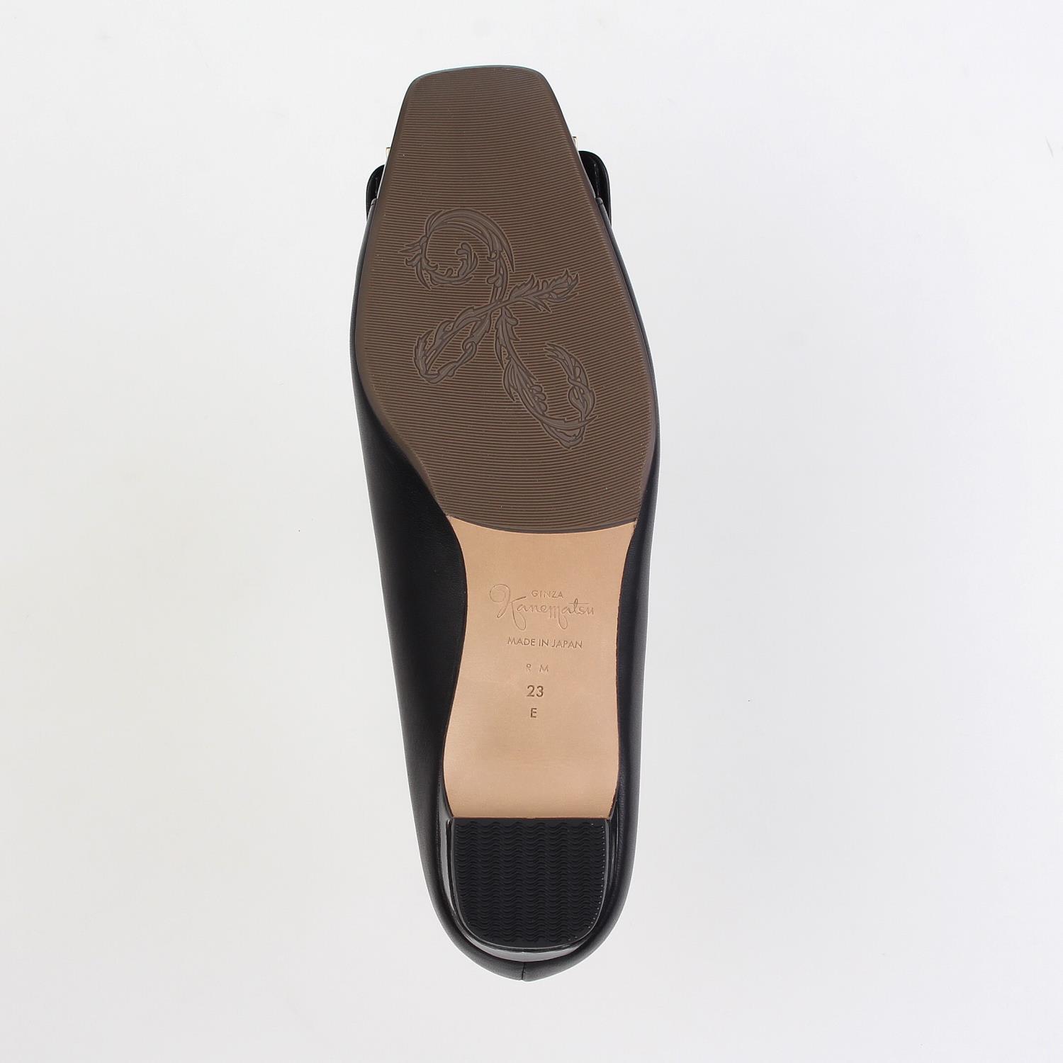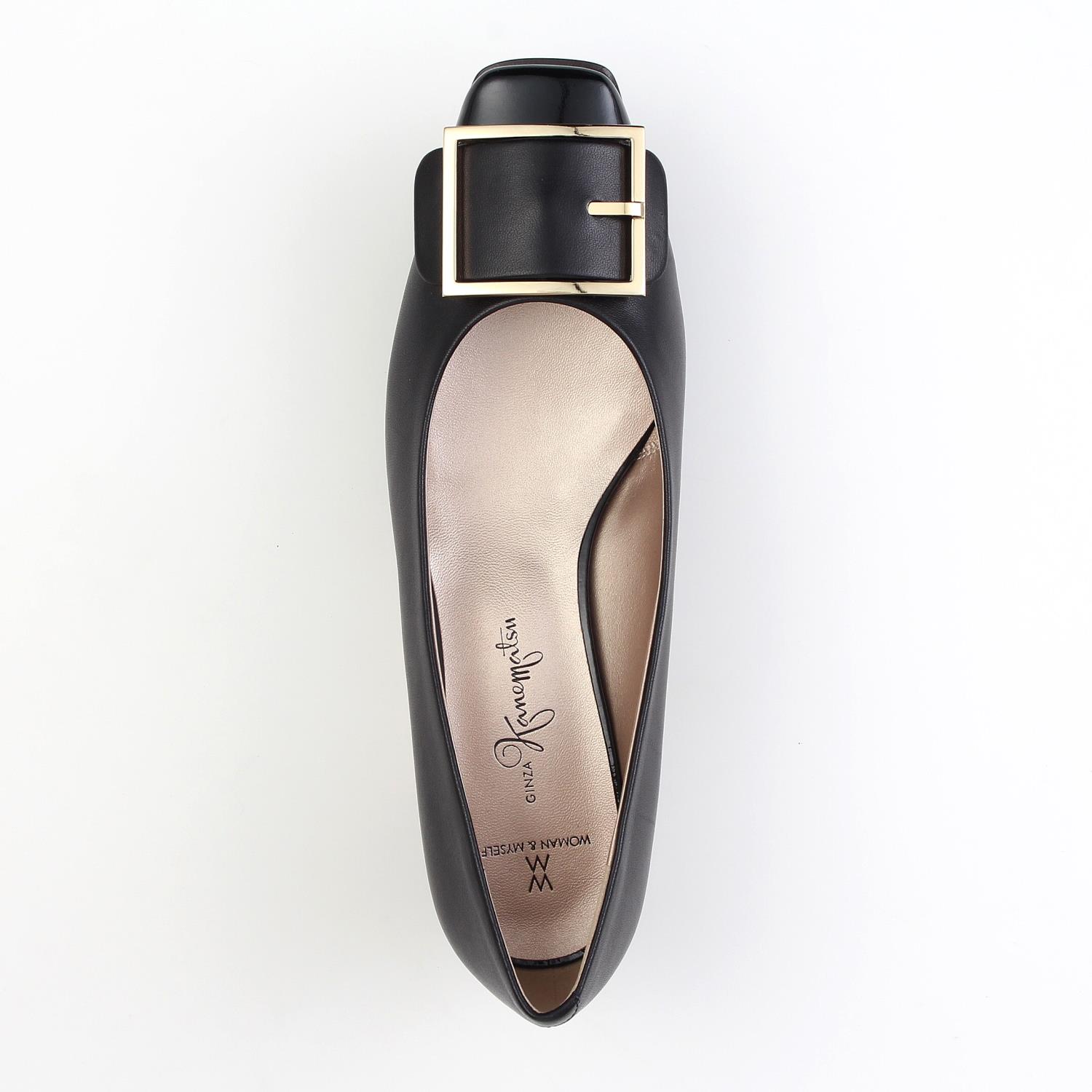 ゆったりめの木型を使用したローヒールパンプス。